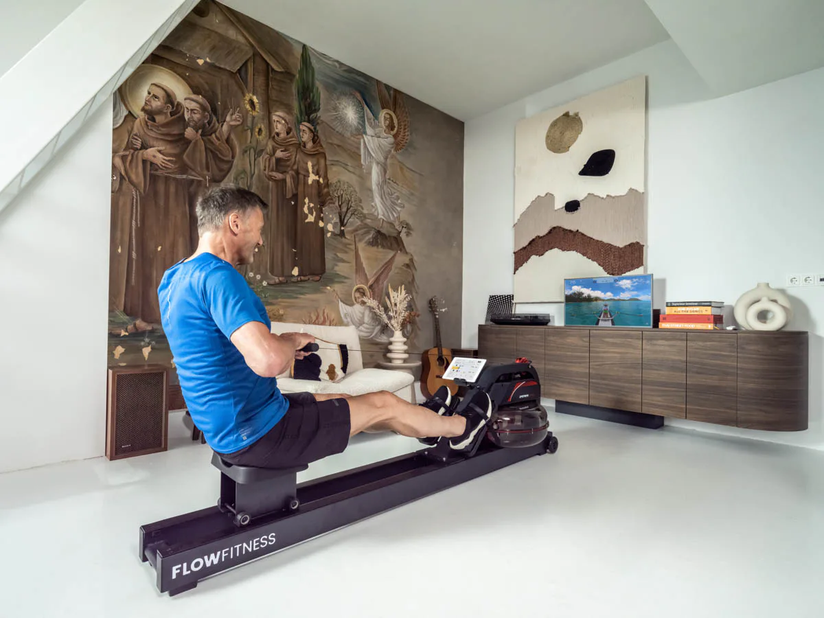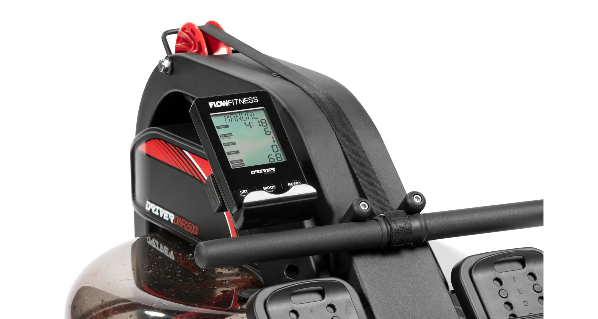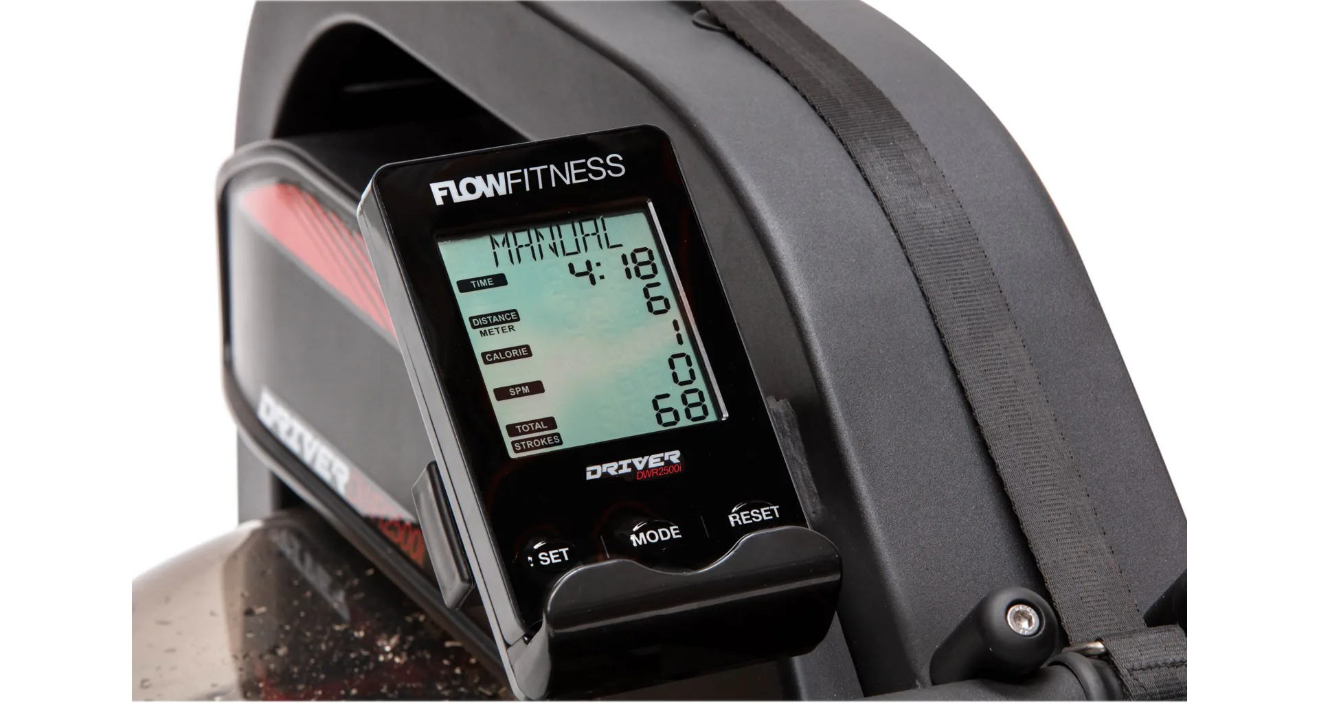 Flow Fitness DWR2500i je veslovací trenažér s robustní ocelovou konstrukcí a velmi kvalitním pojezdem. Odpor je u vesla řízen vodou, což zajišťuje pocit jako z opravdového veslování. Výškově nastavitelné pedály jsou opatřeny řemínky pro správné zafixování nohou.