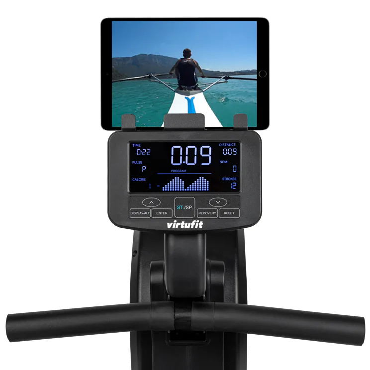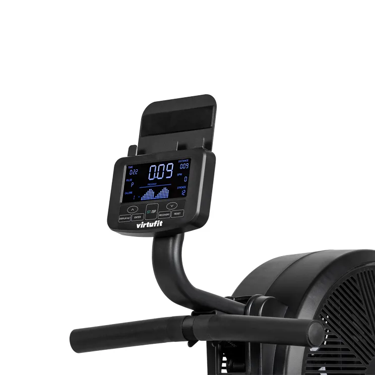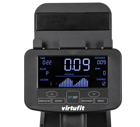 Veslovací trenažér VIRTUFIT Elite Air Magnetic je vybaven inverzně podsvětleným přehledným LCD počítačem, na kterém se zobrazují hodnoty jako úroveň zátěže, rychlost, čas veslování, počet záběrů, watty, puls a další. Součástí displeje je také bohatá programová nabídka s bluetooth čipem, díky kterému trenažér komunikuje s tréninkovými aplikacemi.