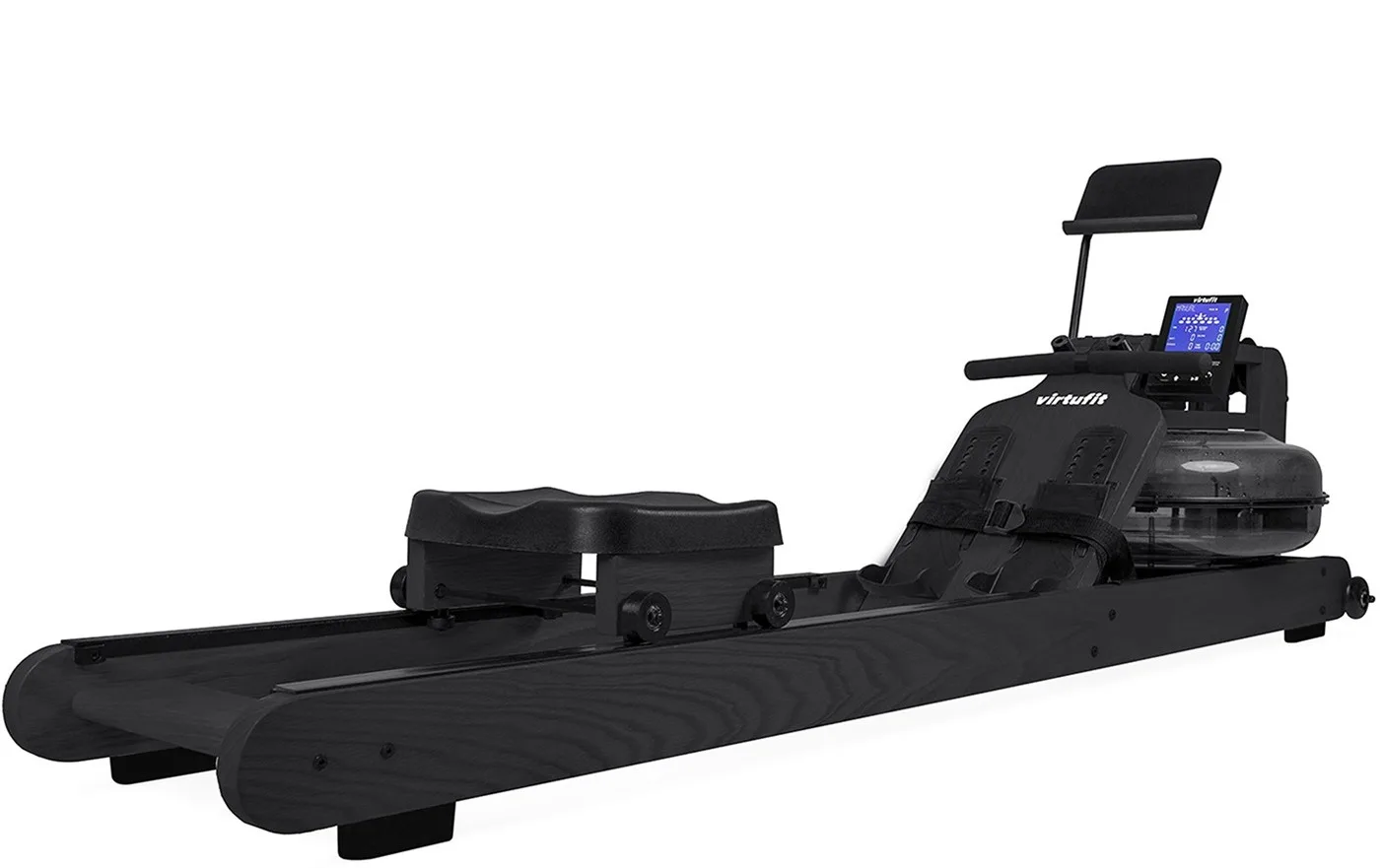 VirtuFit Elite Water Resistance Wood je veslovací trenažér s robustní dřevěnou konstrukcí a velmi kvalitním pojezdem. Odpor je u vesla řízen vodou, což zajišťuje pocit jako z opravdového veslování. Výškově nastavitelné pedály jsou opatřeny řemínky pro správné zafixování nohou.