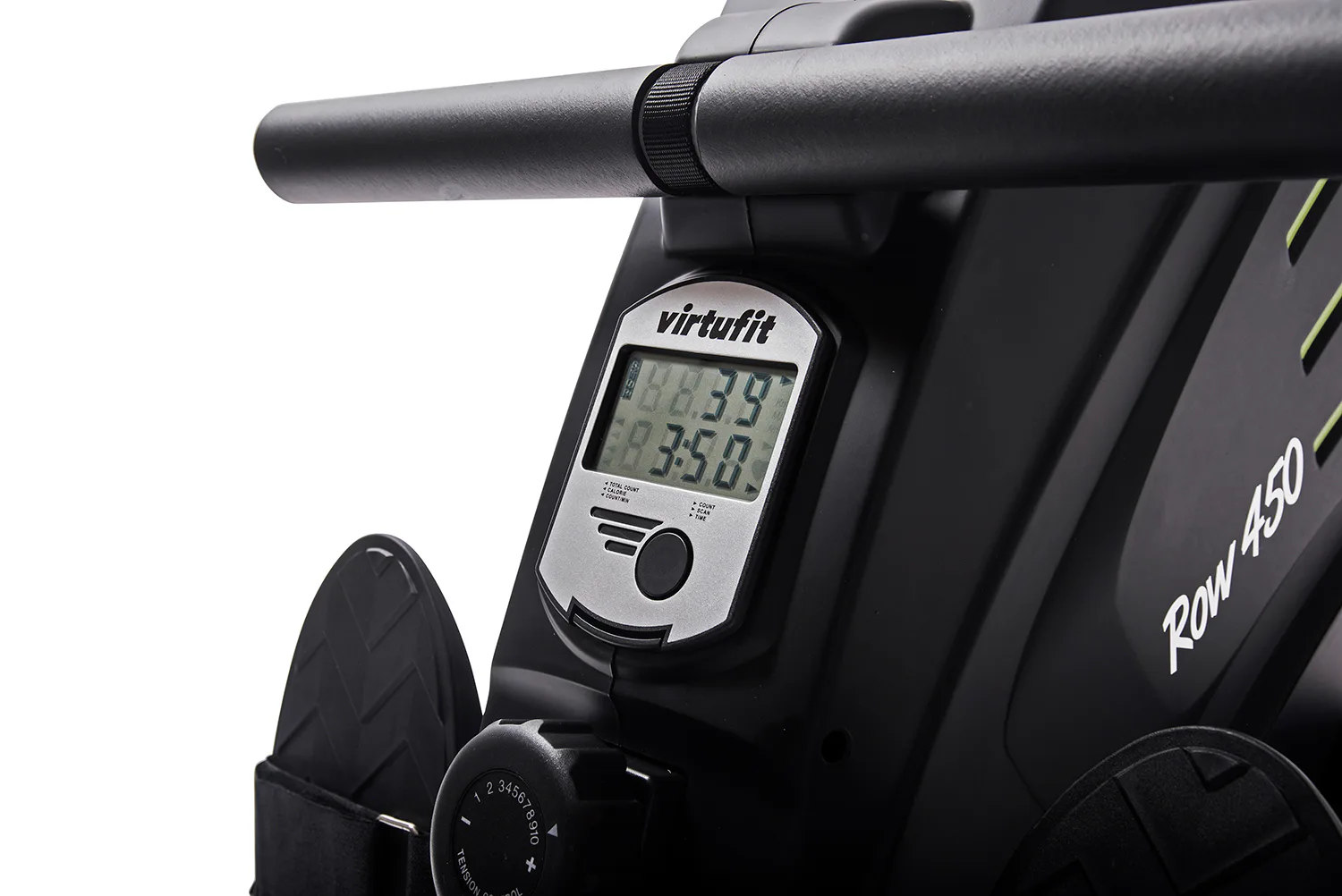 VIRTUFIT Row 450 je veslovací trenažér vhodný pro domácí kondiční trénink za účelem zvýšení fyzické kondice, tvarování postavy a redukce tuku. Díky širokému rozsahu zátěží vyhovuje pro muže i ženy a poskytuje hladké a realistické veslování.