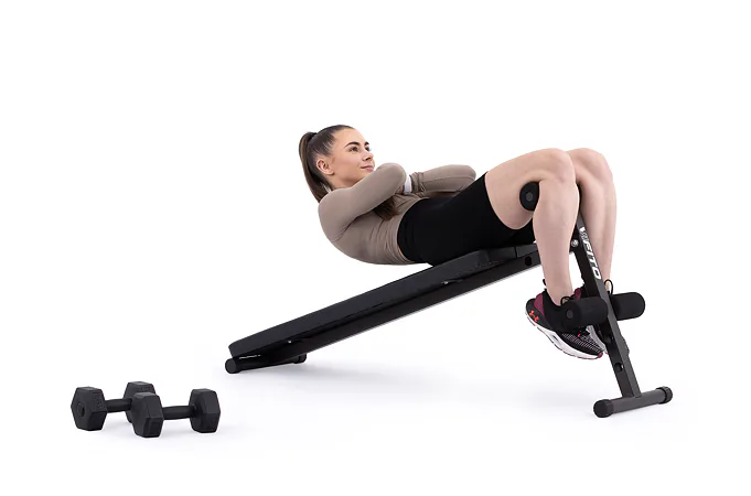 Posilovací lavice VIFITO A20 je šikmá lavice na cvičení břišních svalů s možností jednoduchého nastavení opěrek pro nohy. Oproti konkurenčním produktům lze u VIFITO A20 pěnové válce pro zapření nohou nastavit až ve 3 polohách! Přizpůsobí se tak výšce každého uživatele.