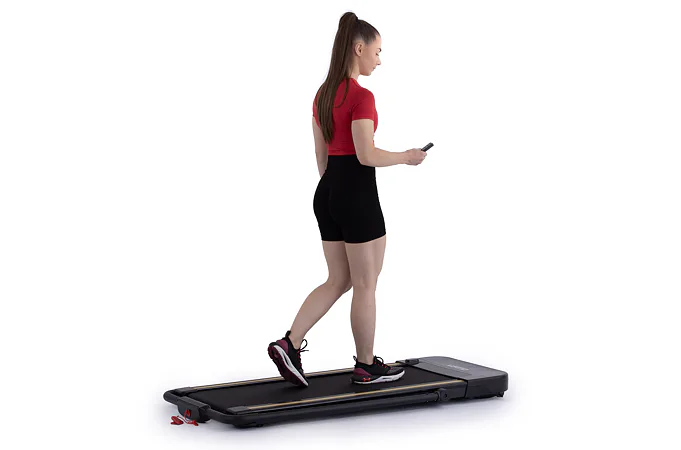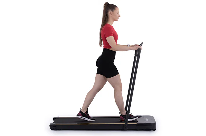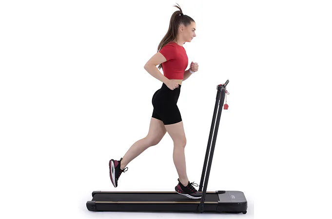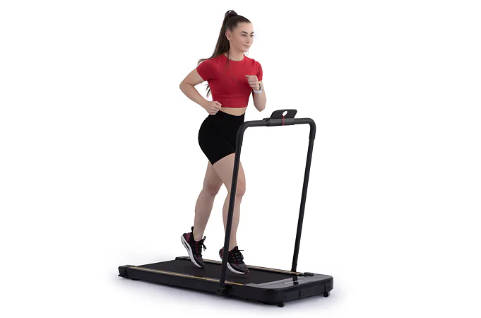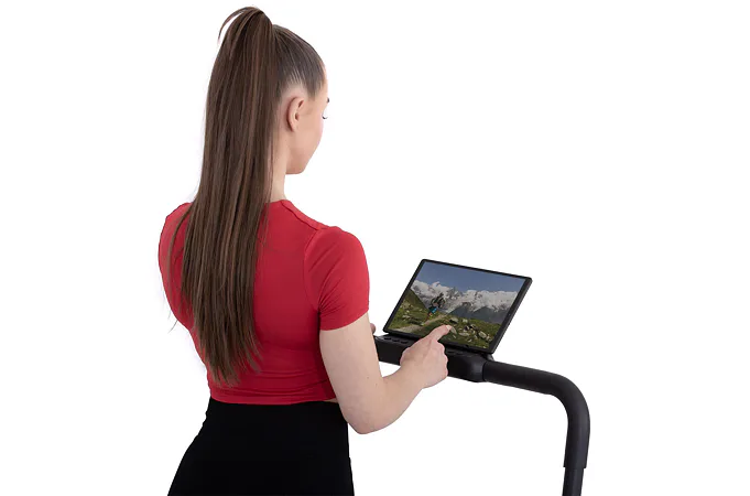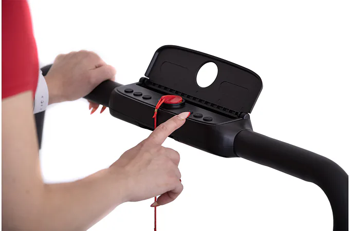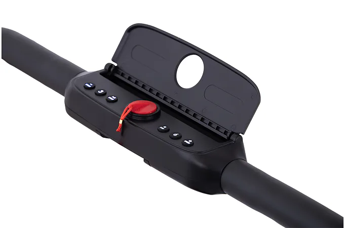 Rychlost běhu si můžete nastavovat během tréninku ručně tlačítky na panelu, nebo pomocí dálkového ovladače. Bezpečnost při chůzi/běhu zaručuje sklopné madlo, na kterém se zároveň nachází ovládací konzole.