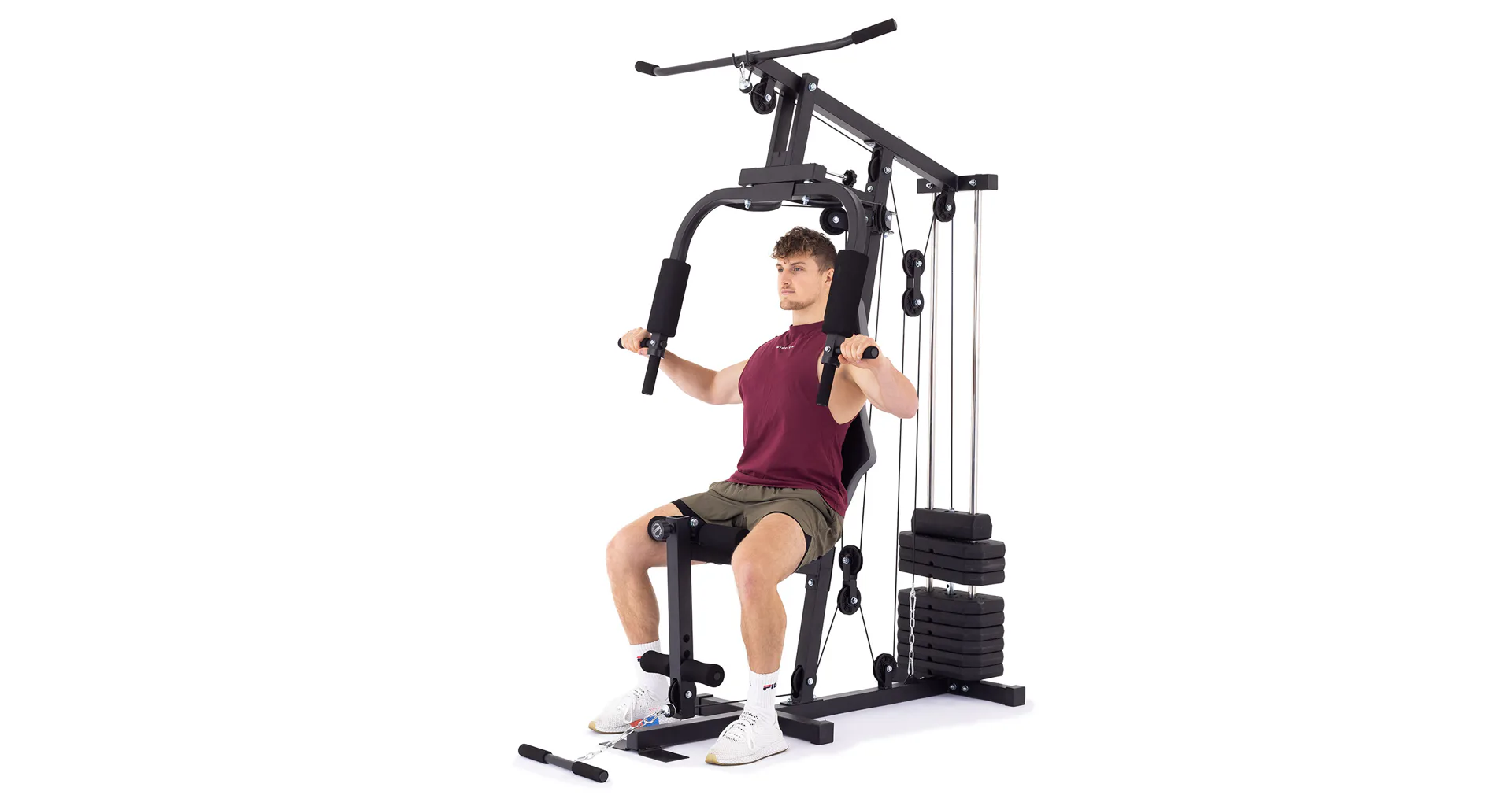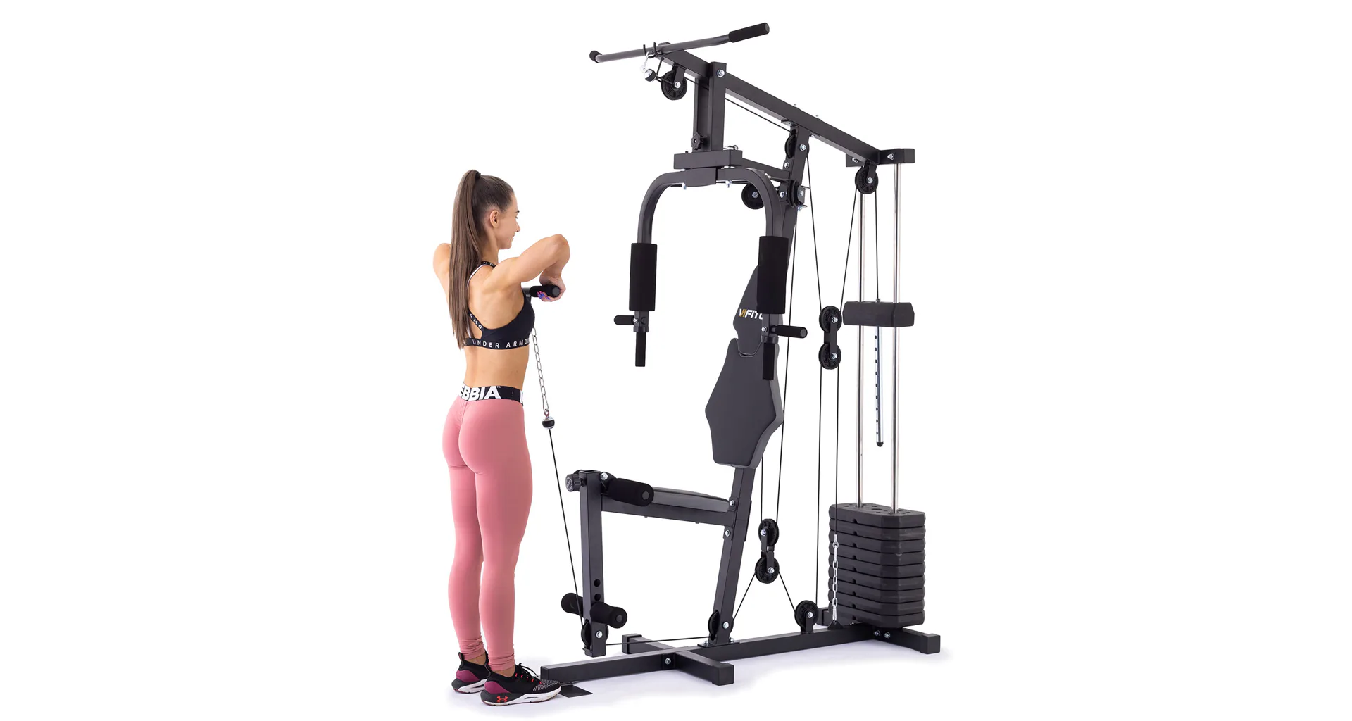 Posilovací věž VIFITO Gama 35 umožňuje díky řadě adaptérů na malé ploše procvičit přes 30 různých cviků na všechny svalové partie. K nejoblíbenějším patří cviky jako tlaky v sedě, stahování horní / spodní kladky, motýlek na prsní svaly, veslování na spodní kladce, biceps ve stoje či v sedě, předkopávání, zakopávání na nohy atd.