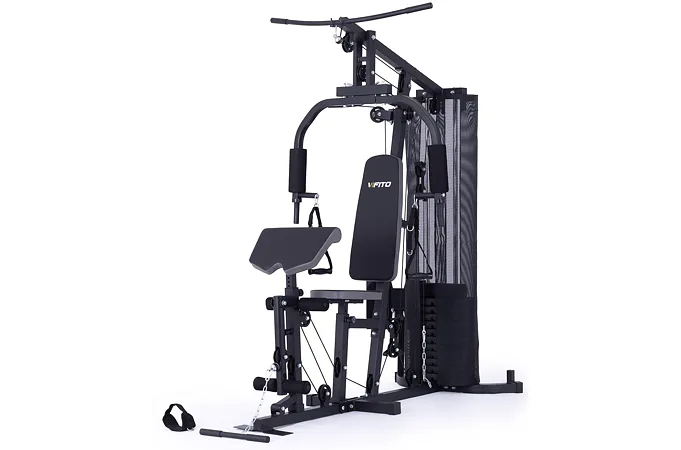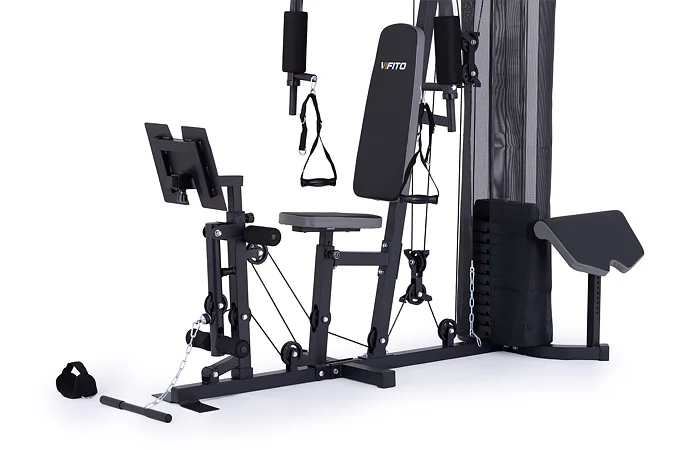 Posilovací věž VIFITO Gama 45 je pokročilým modelem oblíbené značky VIFITO, který je vybavený i modulem pro legpress. Věž je určena pro náročnější domácí využití, pro uživatele, kteří chtějí na relativně malém prostoru procvičit celé tělo, vytvarovat postavu a nabrat svalovou hmotu. Závaží je řešeno pomocí klasických cihliček, díky zpřevodování umožňuje na vybraných adaptérech cvičení s vahou až 90 kg. Nastavení požadované váhy je snadné, rychlé a bezpečné i pro začátečníky.