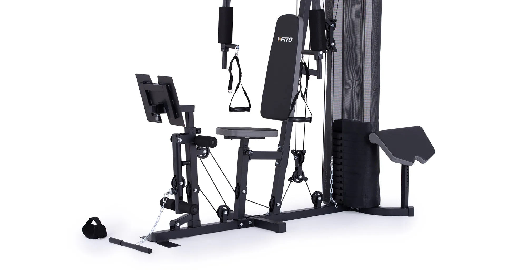 Posilovací věž VIFITO Gama 45 umožňuje díky řadě adaptérů na malé ploše procvičit přes 40 různých cviků na všechny svalové partie. K nejoblíbenějším patří cviky jako tlaky v sedě, stahování horní / spodní kladky, motýlek na prsní svaly, veslování na spodní kladce, biceps ve stoje či v sedě, předkopávání, zakopávání na nohy.