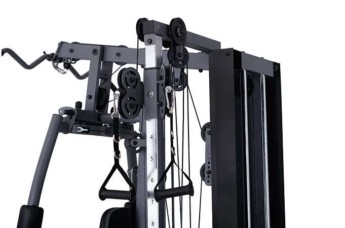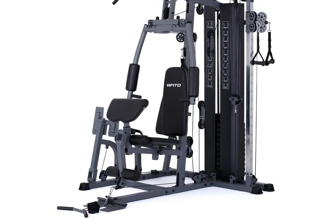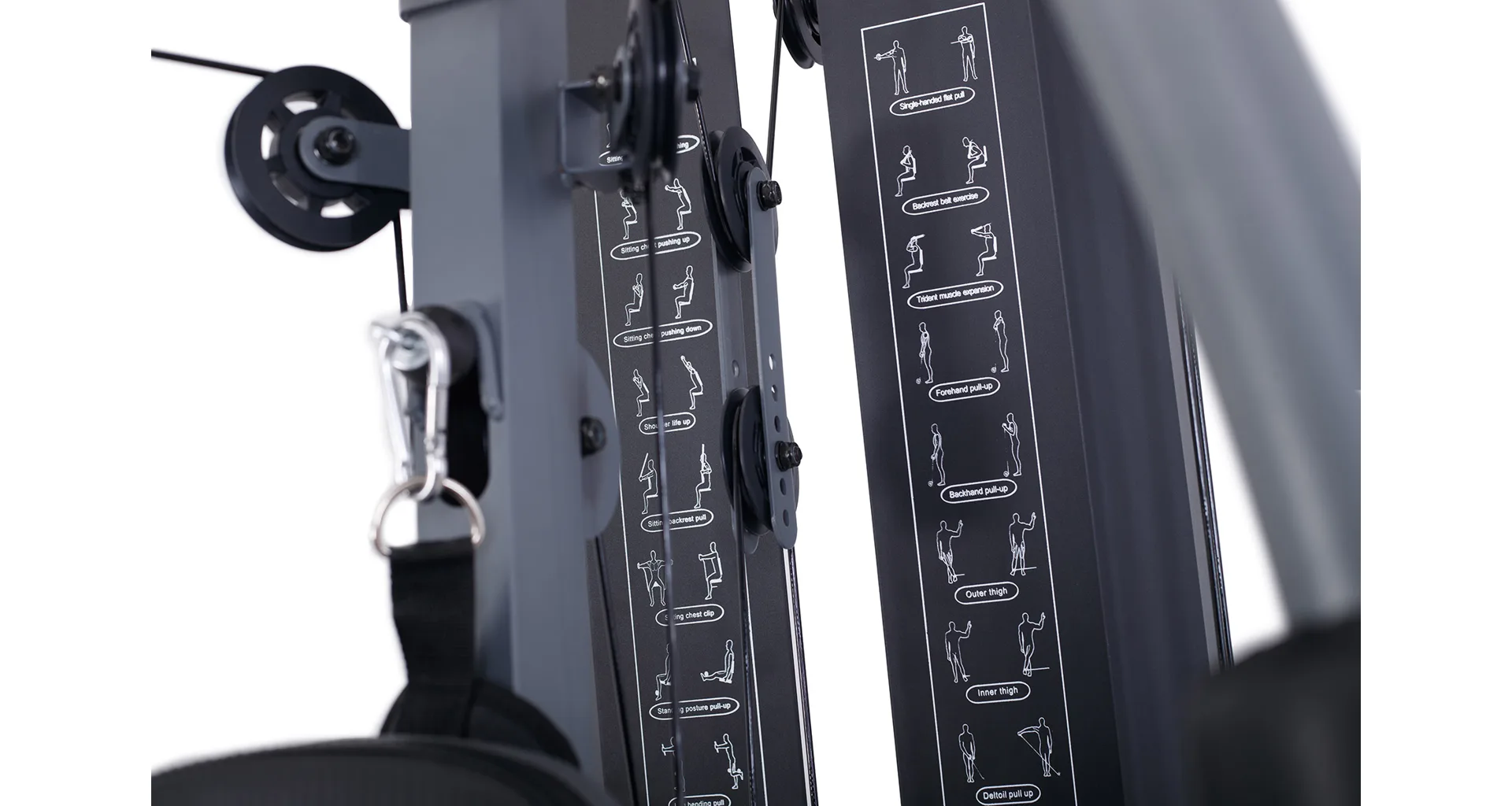 Posilovací věž VIFITO Gama 85 umožňuje díky řadě adaptérů na malé ploše procvičit přes 50 různých cviků na všechny svalové partie. K nejoblíbenějším patří cviky jako tlaky v sedě, stahování horní / spodní kladky, motýlek na prsní svaly, veslování na spodní kladce, biceps ve stoje či v sedě, předkopávání, zakopávání na nohy, cviky na šikmé lavici a legpress! Nosnost stroje je 150 kg!