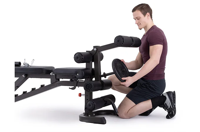 Zátěž se nastaví pomocí kotoučů na nakládací trn o průměru 25 nebo 50 mm. Pro maximální pohodlí je kopač opatřen dohromady 6 pěnovými válci, které jsou potaženy vysoce kvalitní syntetickou kůží odolnou proti potu a protržení.