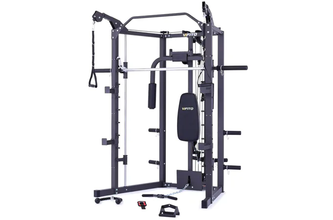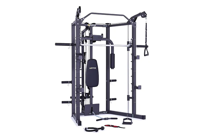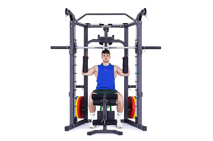Součástí posilovací klece VIFITO Omega S40 jsou dvě protisměrné kladky, peck-deck pro posilování prsních svalů, spodní kladka s opěrkou na nohy, například pro veslování a hrazda, díky které docílíte skvělému zapojení zádových svalů. V přední části konstrukce je možné použít výškově nastavitelné stojany na velkou činku a bezpečnostní dorazy. Všechny kladky a multipress jsou osazeny kvalitními lineárními ložisky s mechanismem pro dopínání, které zaručují přirozenou ergonomii.