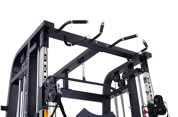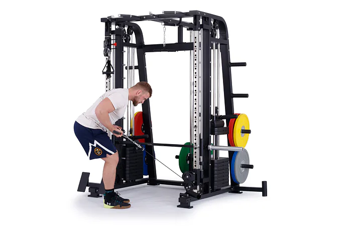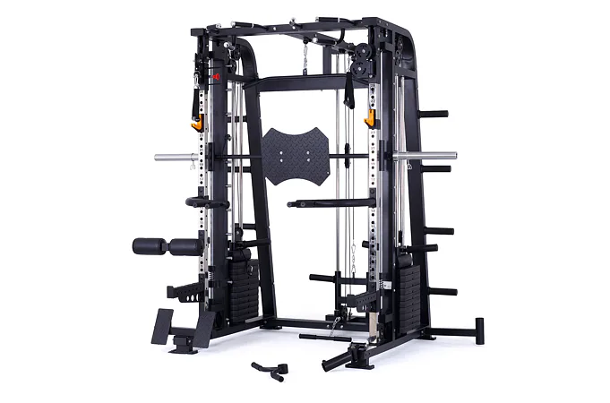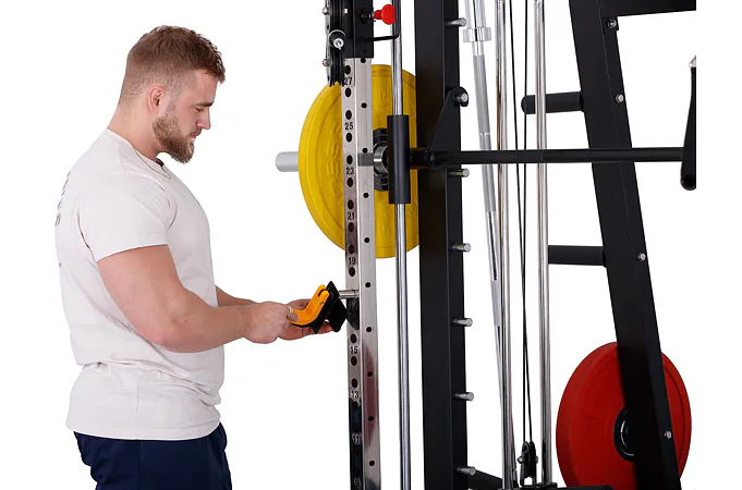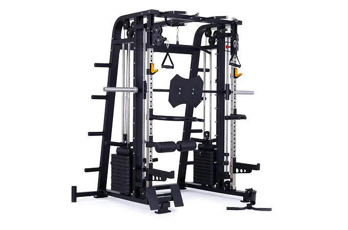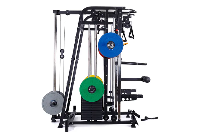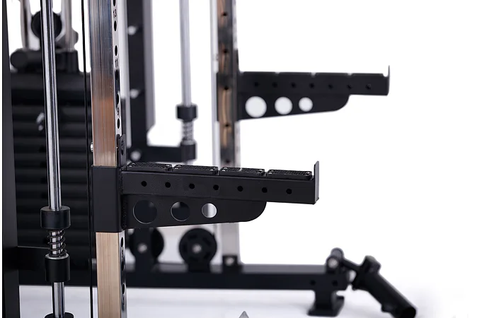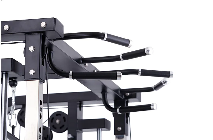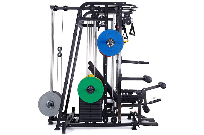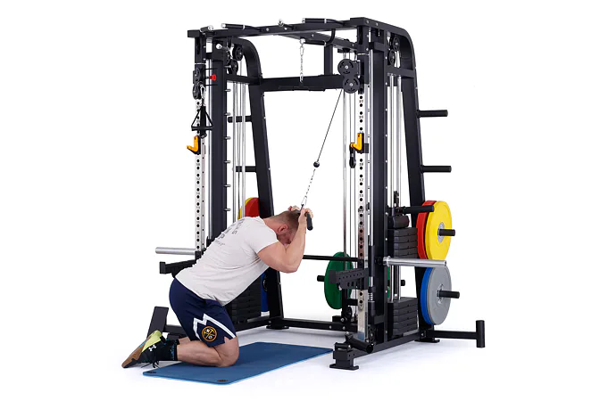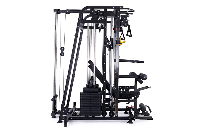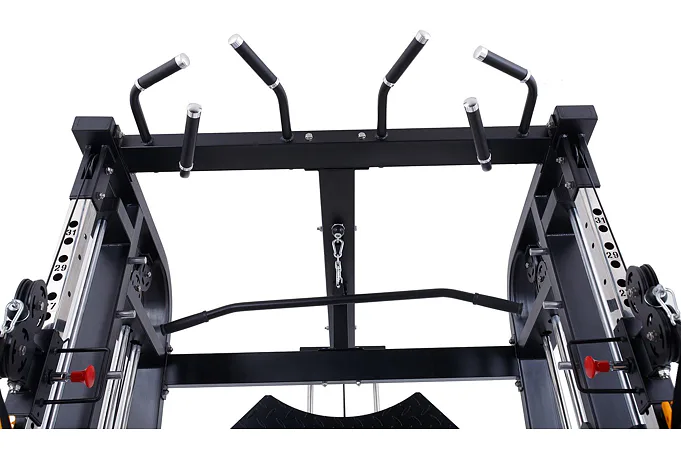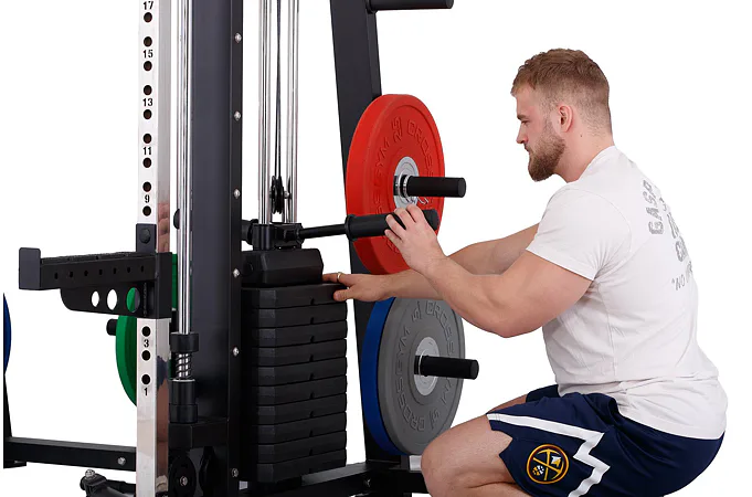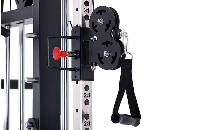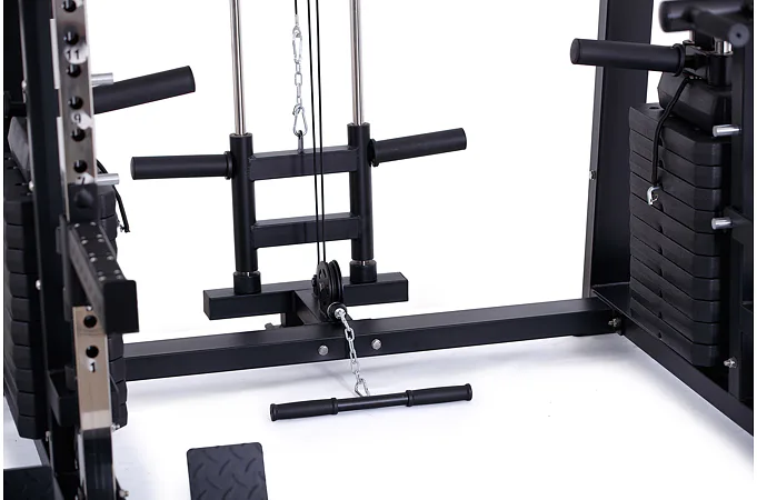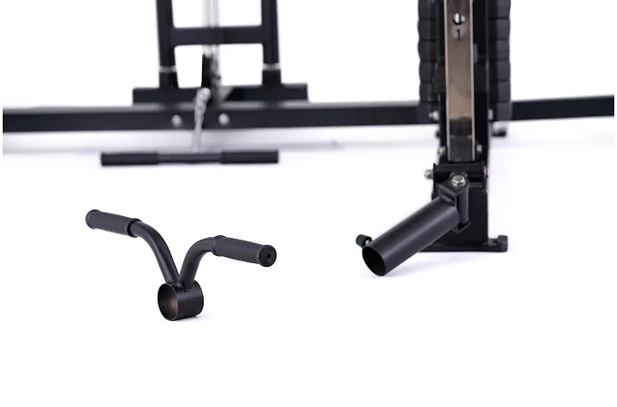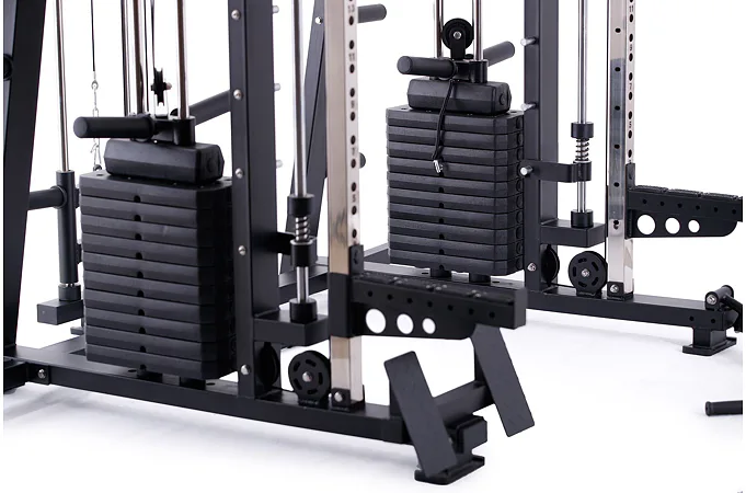Nabízí dva zásobníky zátěže o váze 60 kg (dohromady tedy až 120 kg závaží!). Zároveň nabízí řadu posilovacích odnímatelných adaptérů pro pestrý trénink. Dvě protisměrné kladky, které je možné polohovat do různých výškových poloh, můžete tak perfektně procvičit celé tělo.