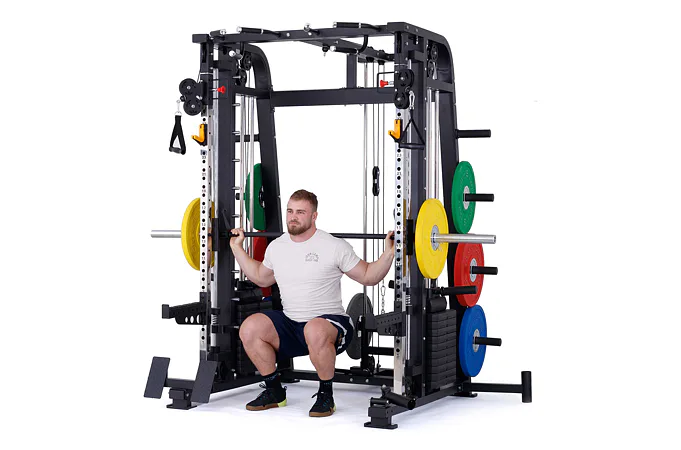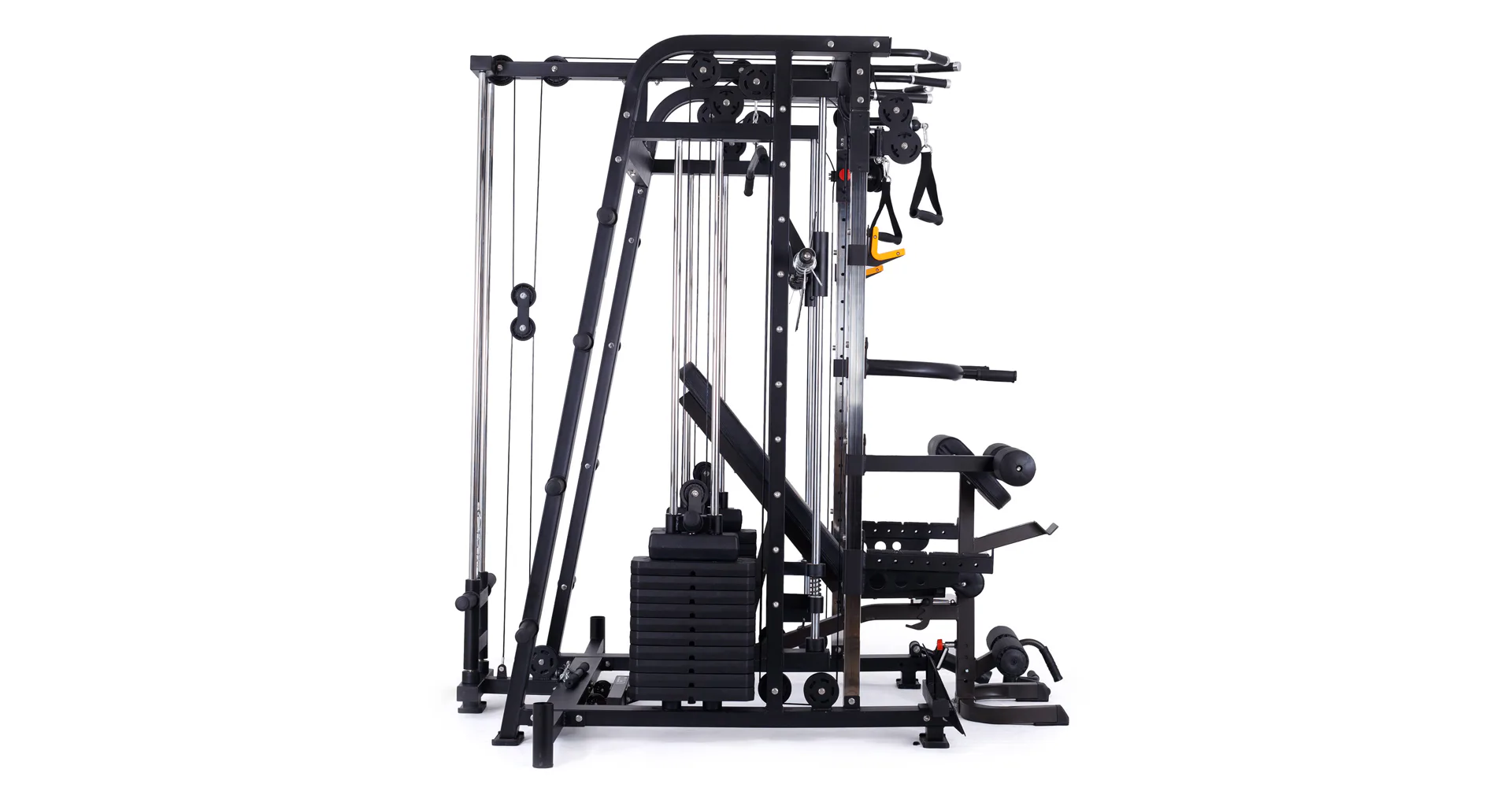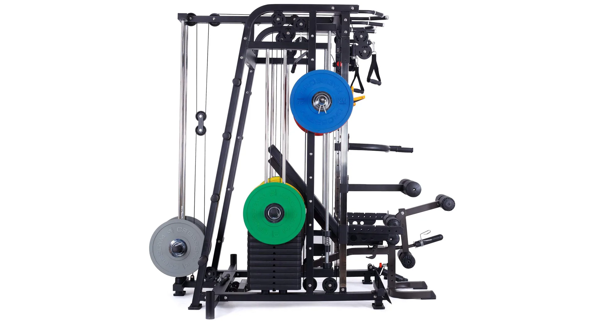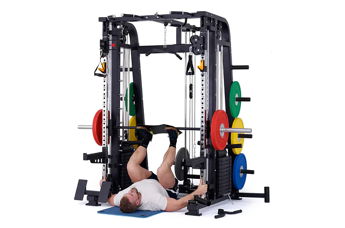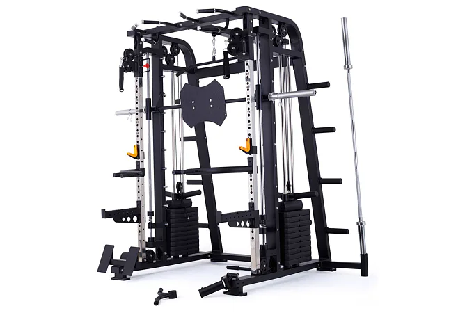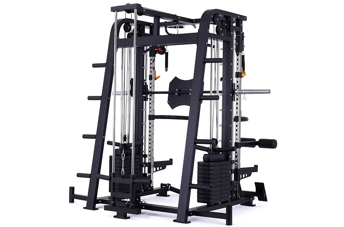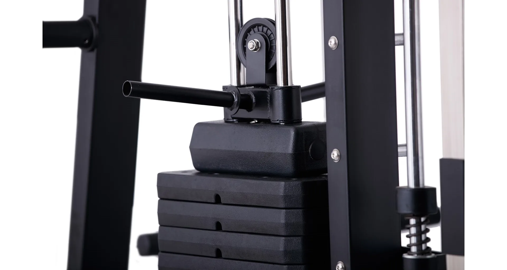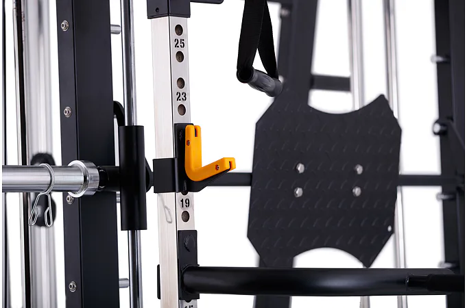 Nabízí dva zásobníky zátěže o váze 60 kg (dohromady tedy až 120 kg závaží!). Zároveň nabízí řadu posilovacích odnímatelných adaptérů pro pestrý trénink. Dvě protisměrné kladky, které je možné polohovat do různých výškových poloh, můžete tak perfektně procvičit celé tělo.