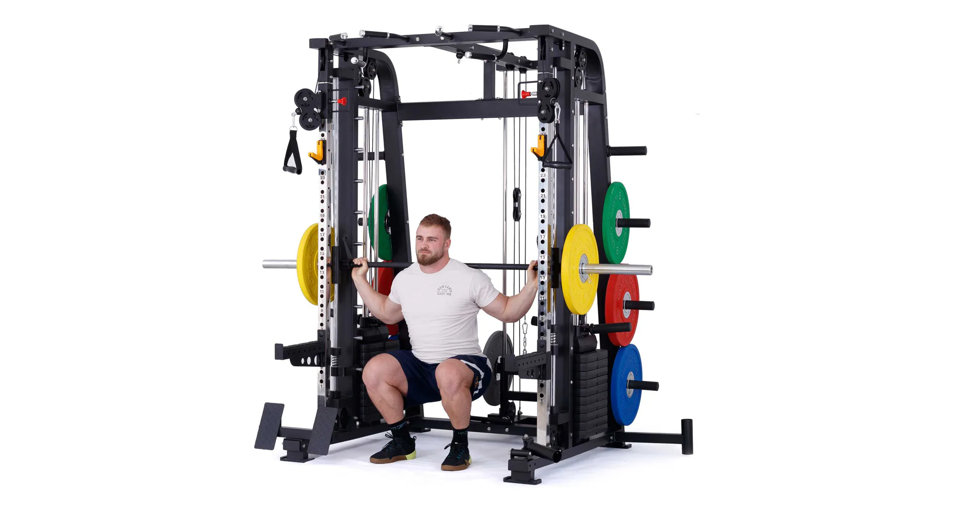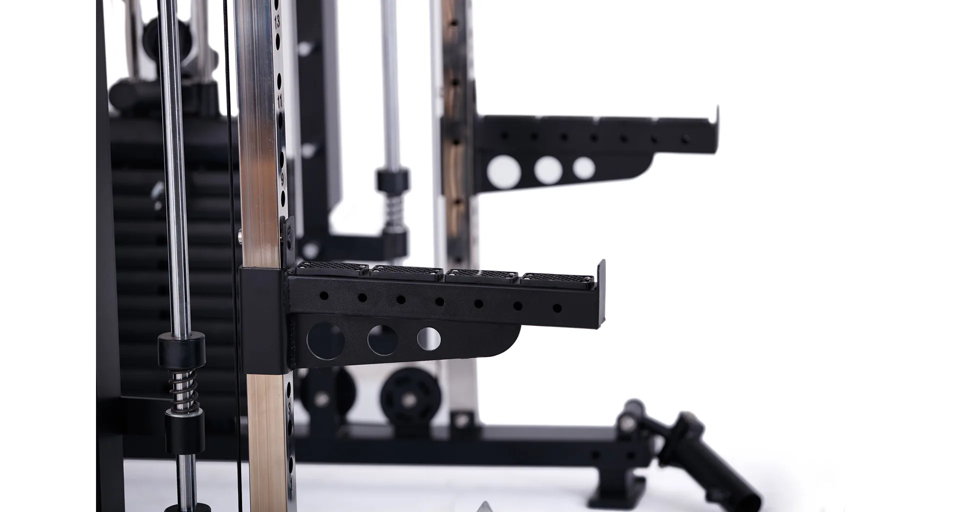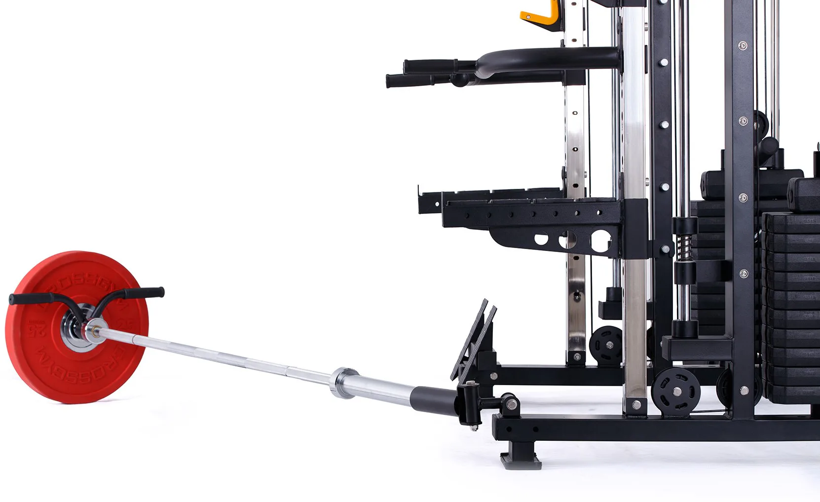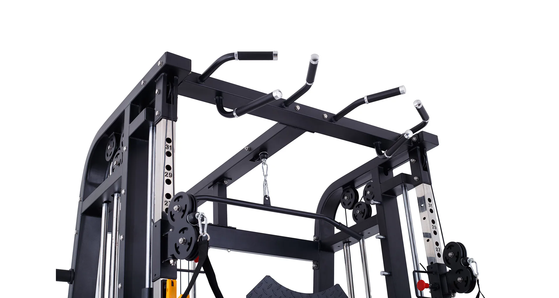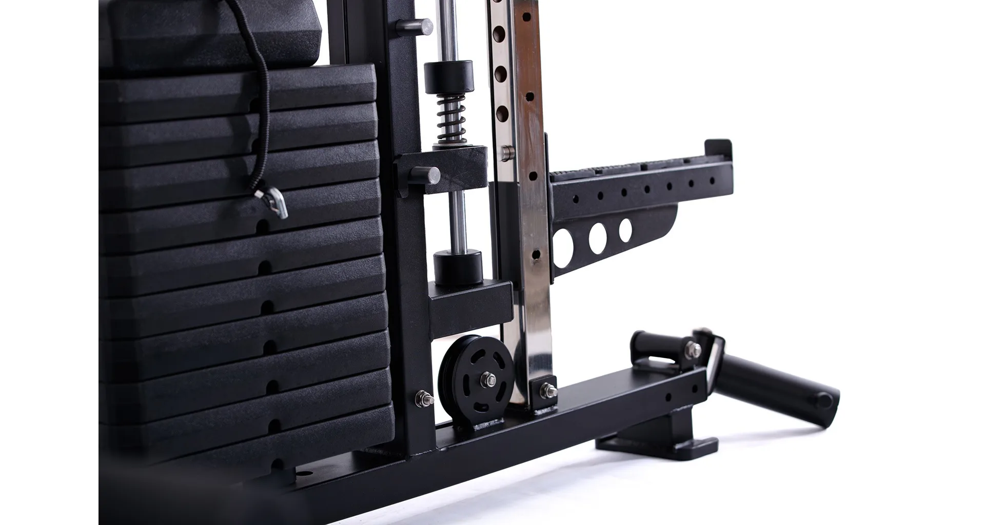 Nabízí dva zásobníky zátěže o váze 60 kg (dohromady tedy až 120 kg závaží!). Zároveň nabízí řadu posilovacích odnímatelných adaptérů pro pestrý trénink. Dvě protisměrné kladky, které je možné polohovat do různých výškových poloh, můžete tak perfektně procvičit celé tělo.