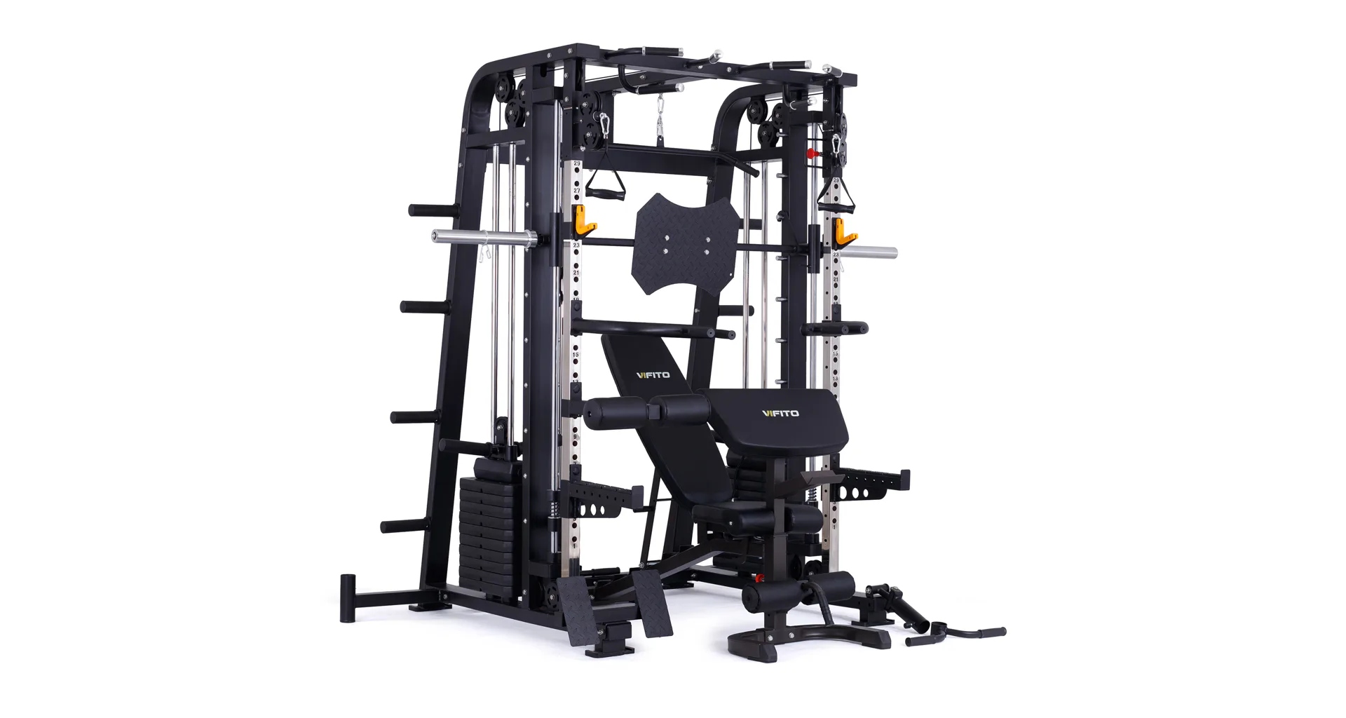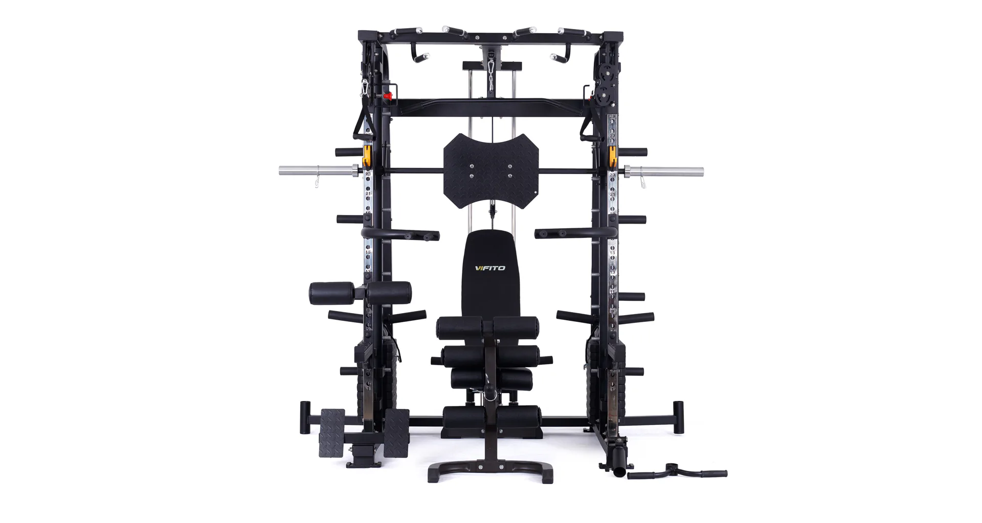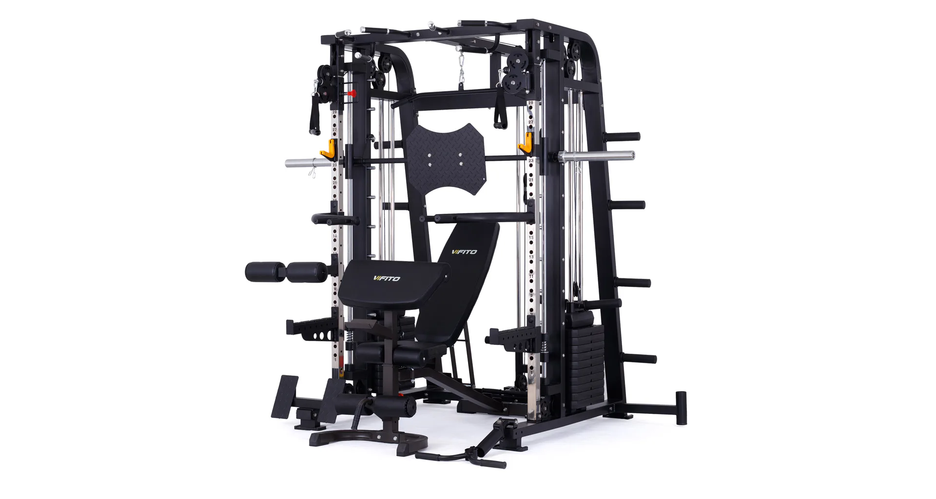 Model VIFITO Omega S70B je oblíbená sestava složená z univerzálního multipressu pro náročné VIFITO Omega S70 a posilovací lavice VIFITO U70.