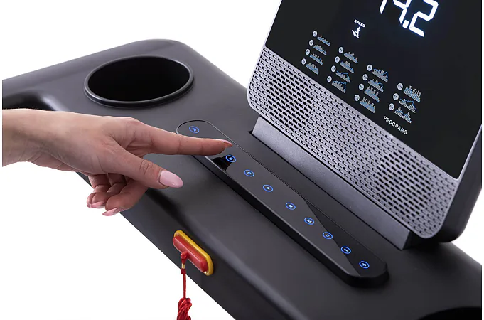 Tento model je vybaven zabudovanými tlačítky pro nastavení rychlosti a sklonu i na postranních madlech. Díky tomu si můžete maximálně užít Váš trénink.