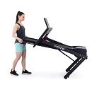 Trenažér je vybavený bezpečným systémem jednoduchého složení, umožňujícím pás po docvičení jednoduše sklopit a ušetřit tak až 60% místa v době, kdy necvičíte.
