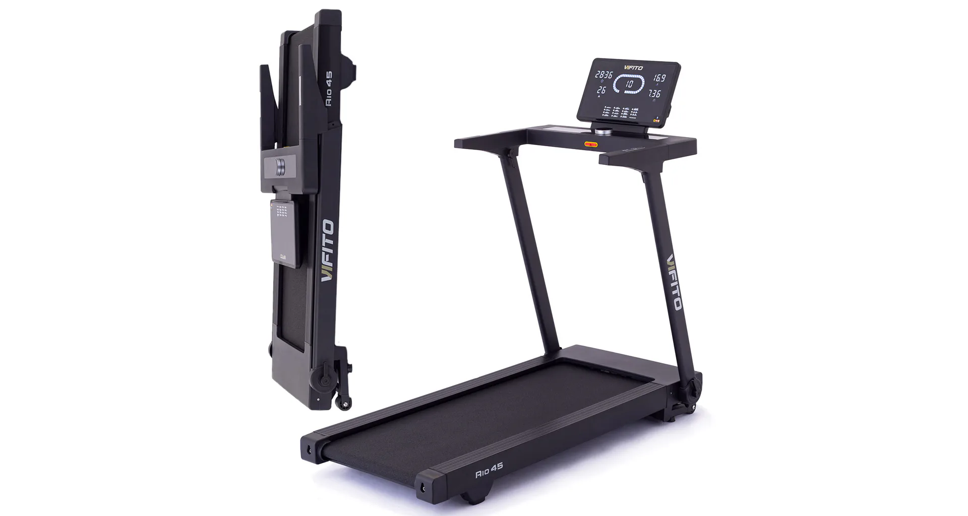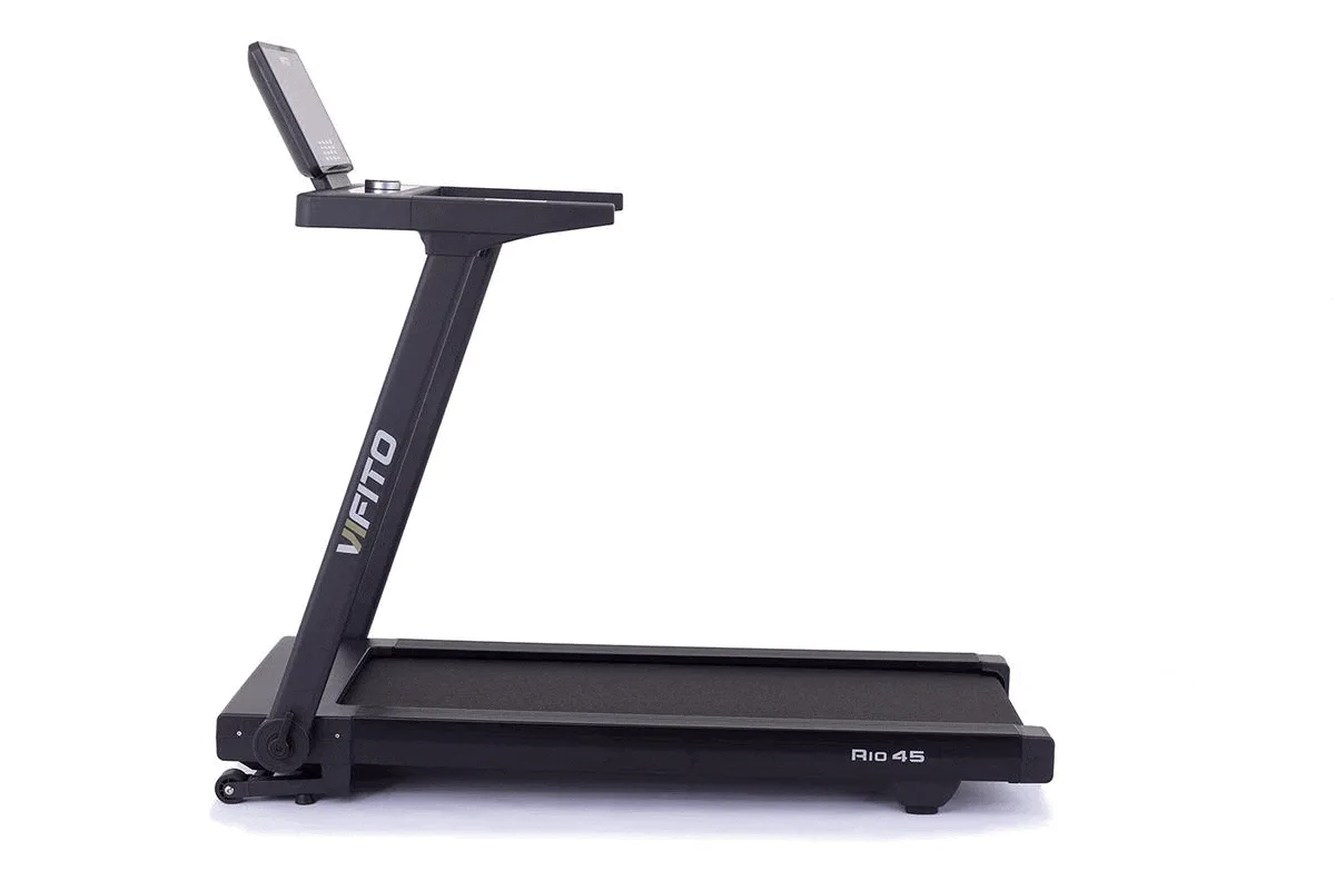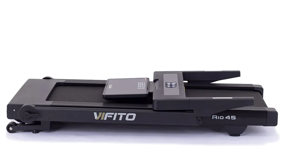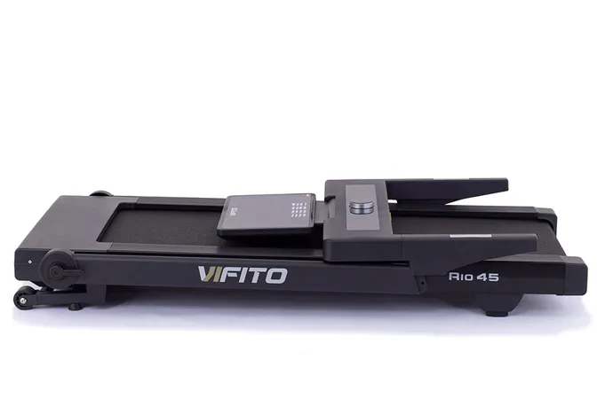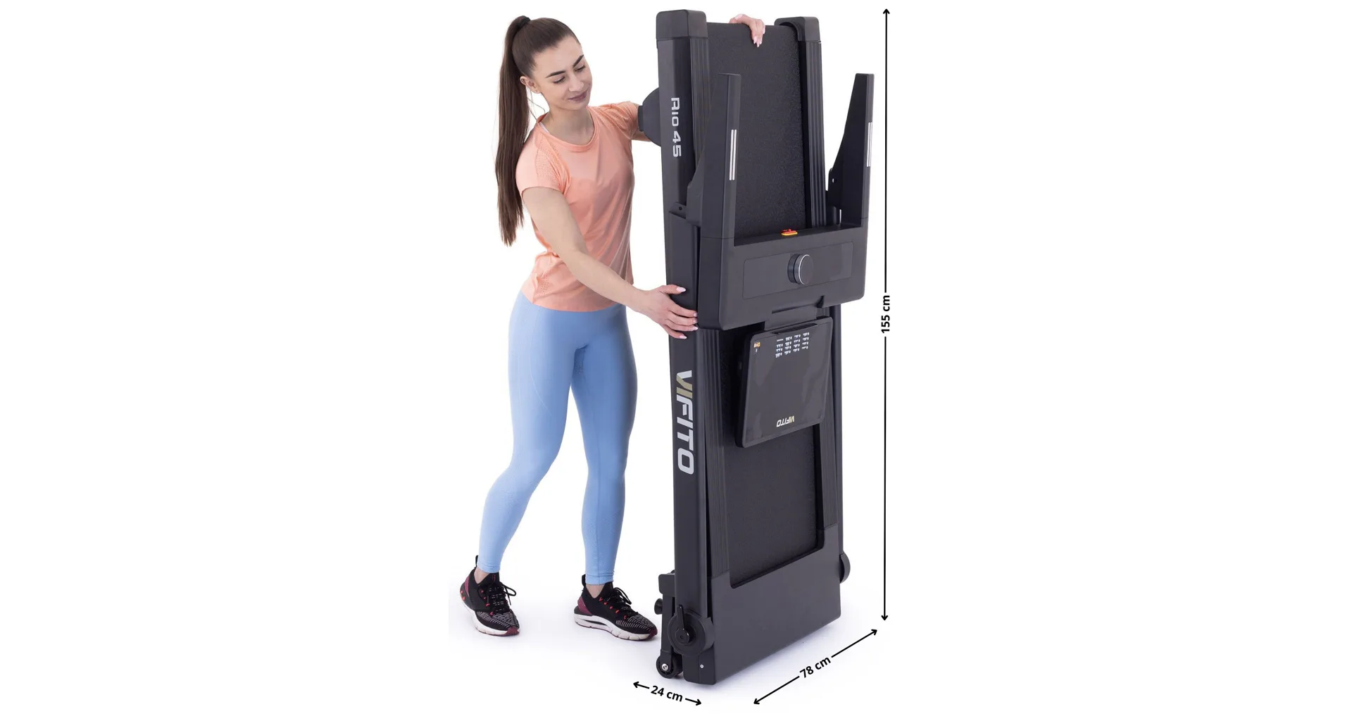 Běžecký pás VIFITO Rio 45 iR vyniká svou skladností, což je klíčová výhoda pro uživatele s omezeným prostorem, například v panelových domech.