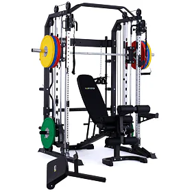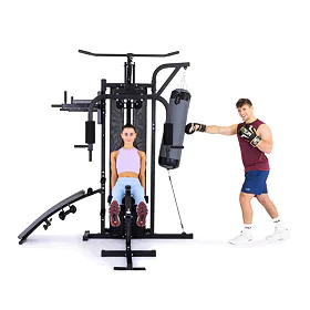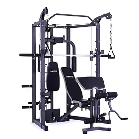 • multifunkční multipress, horní a spodní kladky, stojan na činku, hrazda