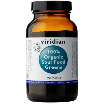 Tato šesti složková směs VIRIDIAN 100% Organic Soul Food Greens z kategorie All-In-One Superfood (vše v jednom balení) nabízí kompletní, naturální zdroje chlorofylu a všech důležitých vitamínů, chelatovaných minerálů, aminokyselin, nenasycených mastných kyselin, antioxidantů, super oxid dismutázy a dalších důležitých fytonutrientů. Je pozoruhodné, že hemoglobin, naše krevní barvivo (krvinky), má téměř stejnou strukturu jako chlorofyl, kterého je tato směs bohatým zdrojem.