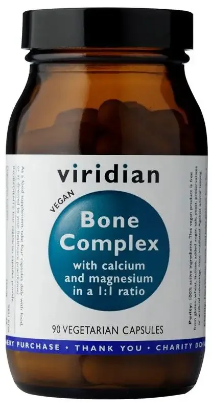 Viridian Bone komplex s obsahem vápníku a hořčíku v poměru 1:1, vitamínu C, K, kyseliny jablečné, bóru a vitamínu D3. Všechny tyto složky působí synergně a jejich poměry jsou zvolené tak, aby produkt dosáhl co nejvyšší biologické využitelnosti. Lze doporučit všem orientovaným na stav a odolnost kostí, na prevenci kostních onemocnění a obecně všem, kdo podstupují zvýšenou fyzickou námahu. Bone Complex je vhodný i pro vegany.
