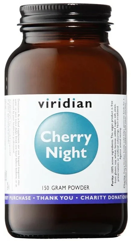 VIRIDIAN Cherry Night je instantní nápoj obsahující kombinaci aminokyseliny L-Glycinu, koncentrátu z višně obecné, extraktu z čínských datlí (cicimku) a hořčíku. Lze doporučit všem zaměřeným na kvalitu spánku a celkové zklidnění mysli.