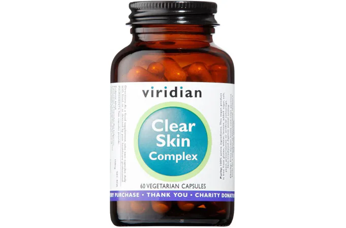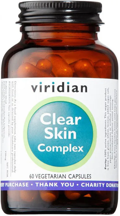 Doplněk stravy Clear Skin Complex, kapsle od značky Viridian obsahuje specificky sestavenou směs minerálů, rostlinných látek a v tuku rozpustných karotenoidů cílených na péči o pleť.