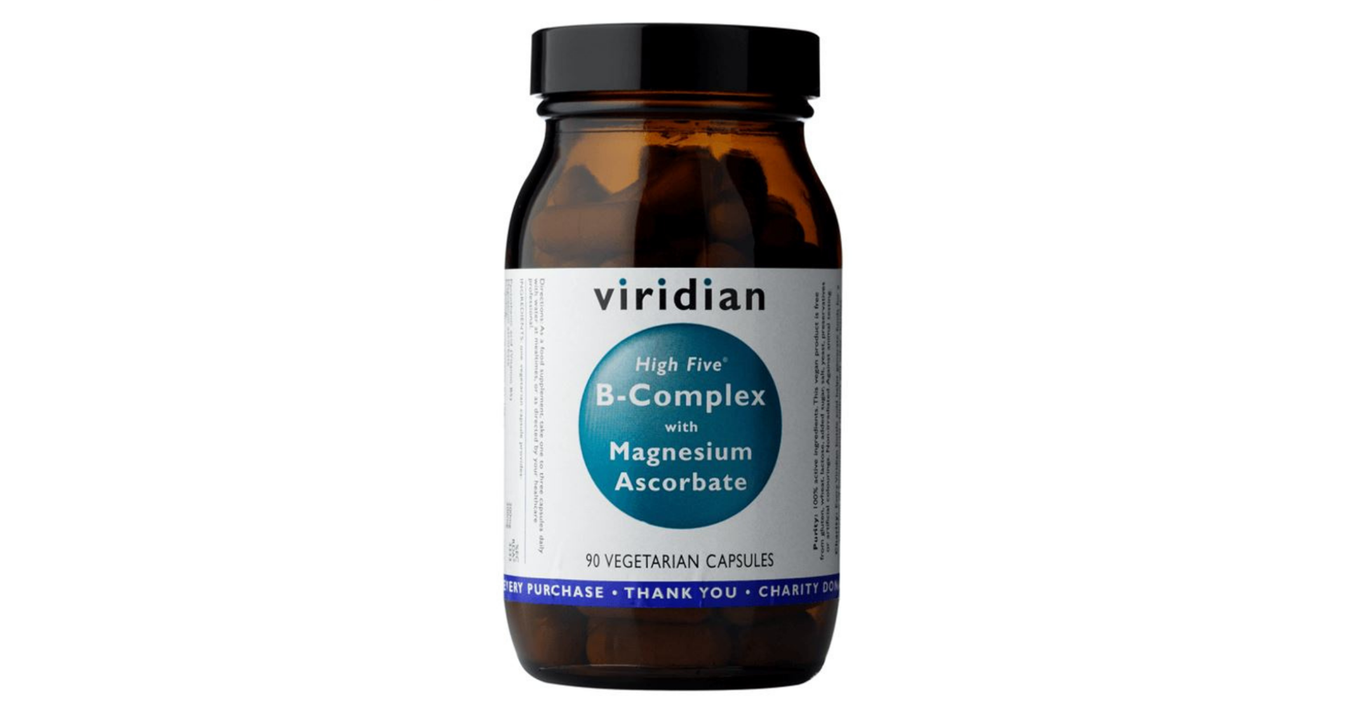 Viridian B komplex s vitamínem C. Obsahuje kompletní, využitelné spektrum vitamínů skupiny B, se zvýšeným zastoupení vitamínu B5 (kyselina pantothenová). Vitamín C je zastoupen v exkluzivní formě L-askorbátu hořečnatého, pH stabilizované formy vitamínu C (nekyselá forma, vázaná na molekulu hořčíku). Množství, kvalita a poměr jednotlivých vitamínů garantuje maximální využitelnost. Produkt neobsahuje žádná syntetická aditiva, umělá barviva a složky živočišného původu, produkt neobsahuje geneticky modifikované, či ozařované složky. Kapsle jsou rostlinného původu.