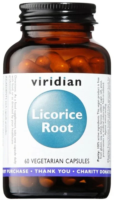 VIRIDIAN Licorice Root je extrakt z kořene lékořice s 20% obsahem glycyrizinu. Lze doporučit všem zaměřeným na potlačení chronické únavy a fybromyalgie, stejně tak zažívacích nebo dýchacích potížích. Svými účinky může lékořice napomáhat k normální funkci dýchacího a trávicího systému, střevního traktu, stavu kloubů, může posilovat energii a imunitní systém, může napomáhat k udržení dobrého duševního zdraví a stavu pokožky.