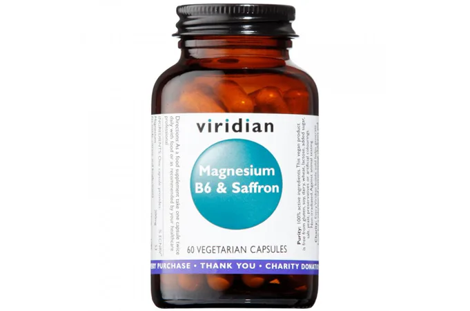 VIRIDIAN Magnesium B6 and Saffron je unikátní doplněk stravy zahrnující silnou kombinaci hořčíku, vitamínu B6 a extraktu ze Šafránu. Hořčík je zastoupen ve formě oxidu hořečnatého, hořečnaté soli kyseliny citrónové a bisglycinátu hořečnatého, přičemž v jedné kapsli se nachází 53% doporučené denní dávky.