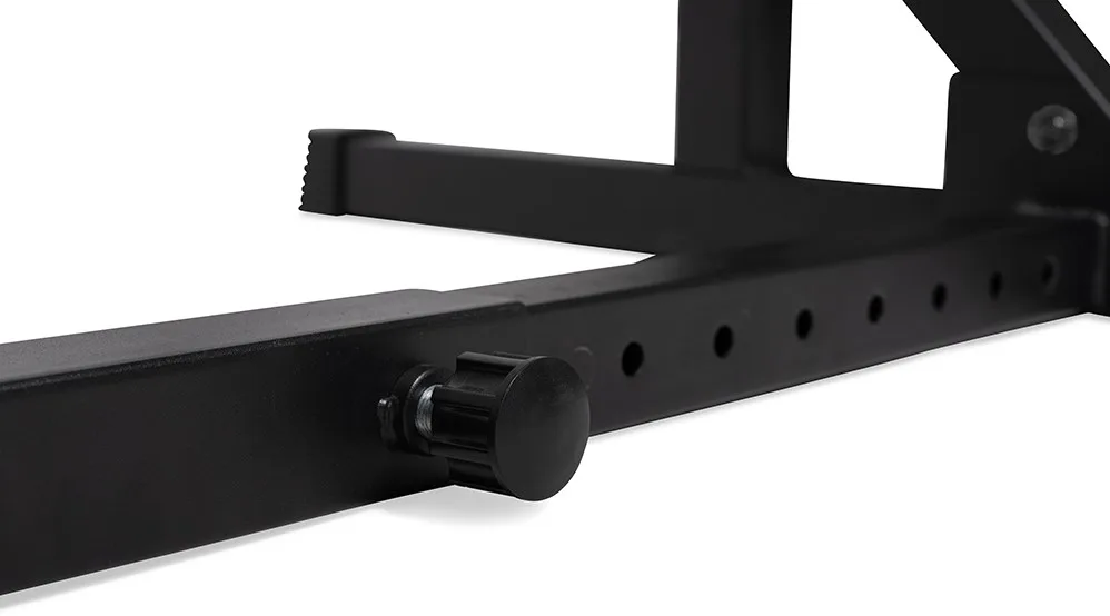 VirtuFit Adjustable Squat Rack je stojan na dlouhou činku. Lze ho využít pro dřepování, jako doplněk k posilovací lavici nebo pro trénink dipů (kliků na bradlech). Díky možnosti nastavení šířky i výšky lze stojan po docvičení jednoduše složit pro úsporu místa. Nastavitelná rozteč stojanu je od 72 cm do 117 cm a výška je od 98 cm do 158 cm.