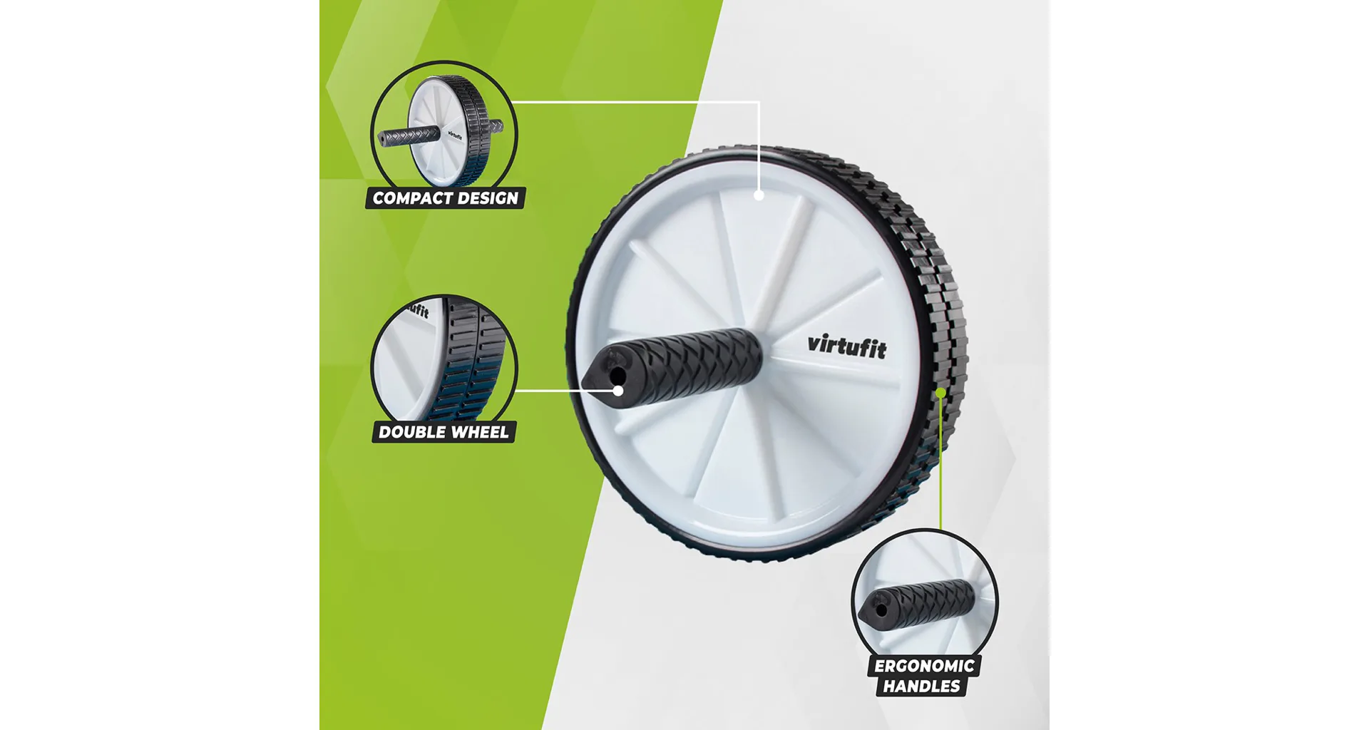 Kolečko na břicho VIRTUFIT AB Roller je velmi efektivní nástroj. Použitím dvojitého kolečka na břicho/roleru se ve skutečnosti méně negativně zatěžuje záda a krk a zaměření se přenáší tam, kde by mělo být: na břišní svaly. VIRTUFIT AB Roller se skládá ze dvou snadno pohyblivých koleček s ergonomickými rukojeťmi, které také trénují nohy, záda, ramena a paže. Hlavní zaměření tohoto kolečka je však na horní, střední, dolní a boční břišní svaly.