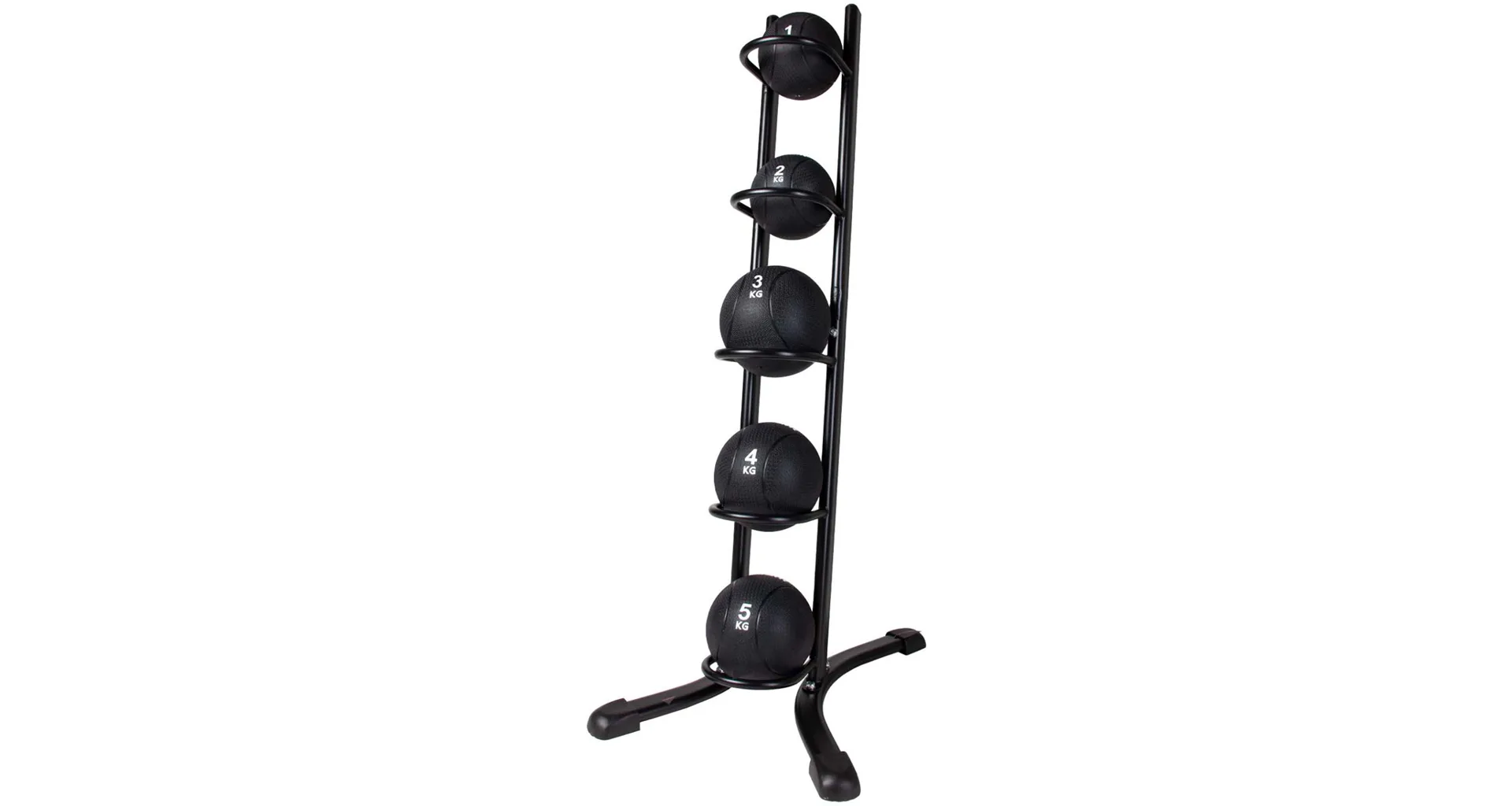 Úložný stojan na medicinbaly VIRTUFIT Medicine Ball Storage Rack má 5 držáků na medicinbaly umístěných jeden nad druhým. Z tohoto důvodu zabírá stojan podlahovou plochu pouze 69 x 55 cm. Je to perfektní úložný systém pro jakýkoli crossfitový prostor, ať už doma nebo v posilovně.
