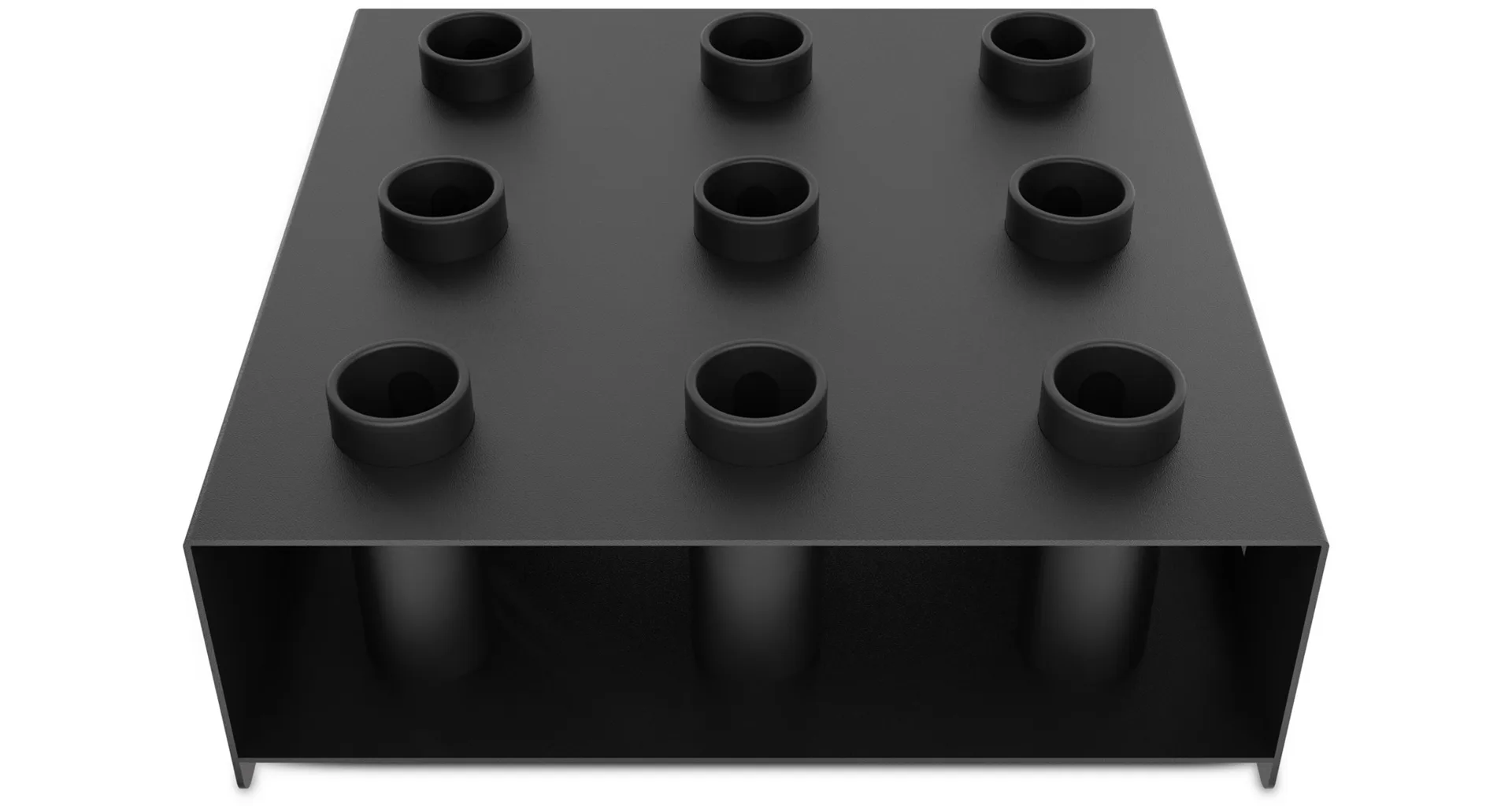 Stojan je vyroben z pevné oceli s matně černým práškovým lakováním, které chrání proti korozi a opotřebení. Stabilní základna zabraňuje převrácení a zajišťuje bezpečné uložení činek. Díky vertikálnímu provedení efektivně využívá prostor a umožňuje snadný přístup ke všem osám, což z něj činí praktické řešení pro jakýkoliv tréninkový prostor.