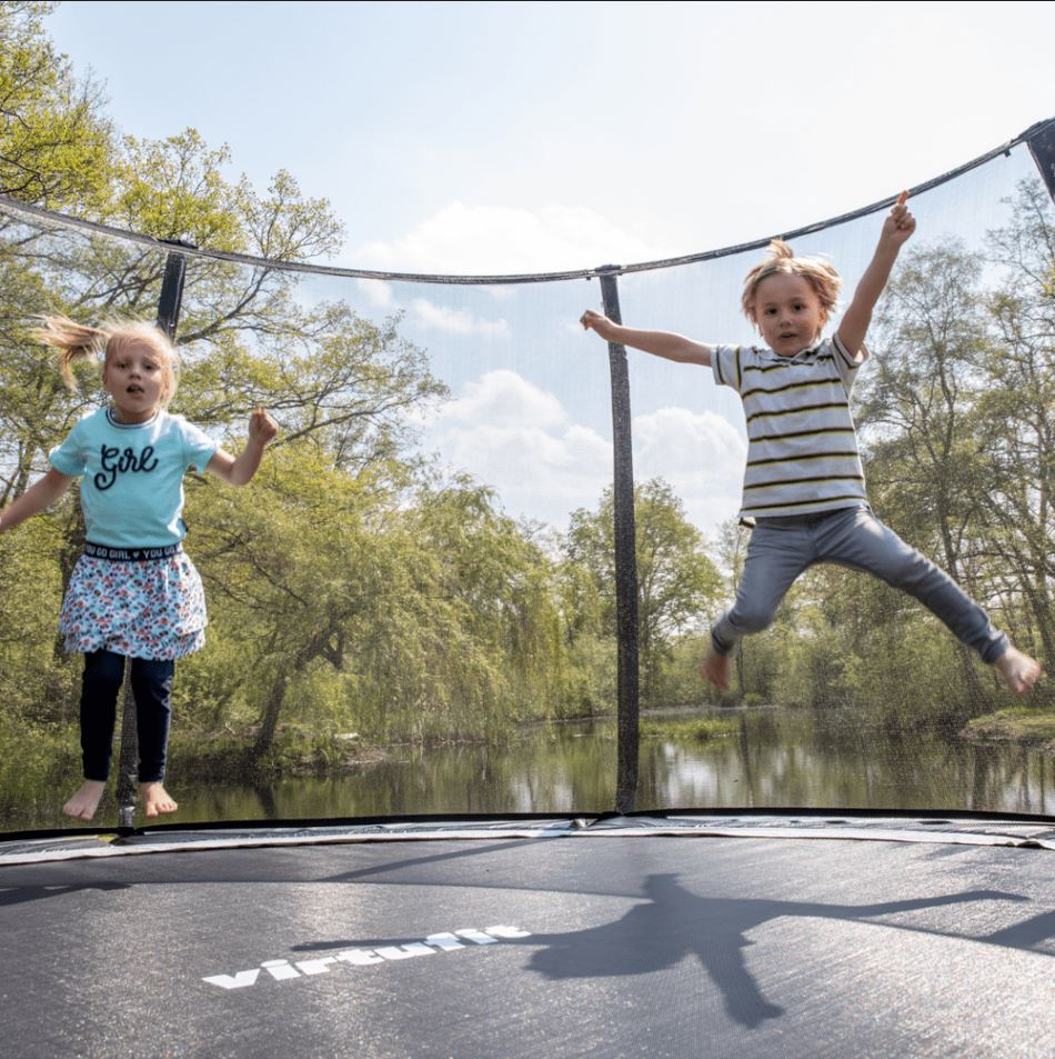 Trampolína VIRTUFIT Premium je perfektním parťákem v letních měsících. Vaše děti si skákání na této tramapolíně rychle zamilují a díky vysoké nosnosti až 150 kg, se můžou společně s dětmi zabavit i dospělí. Trampolíny VIRTUFIT Premium vynikají vysokou stabilitou, pevností a bezpečností. Dokonalou stabilitu zajišťují 3 robustní nohy. Zvýšené stability trampolín VIRTUFIT Premium je dosaženo pomocí robustnosti a provedení nohou. Bezpečnost zajišťují zesílené ochranné kryty pružin a nová technologie T-spojů.