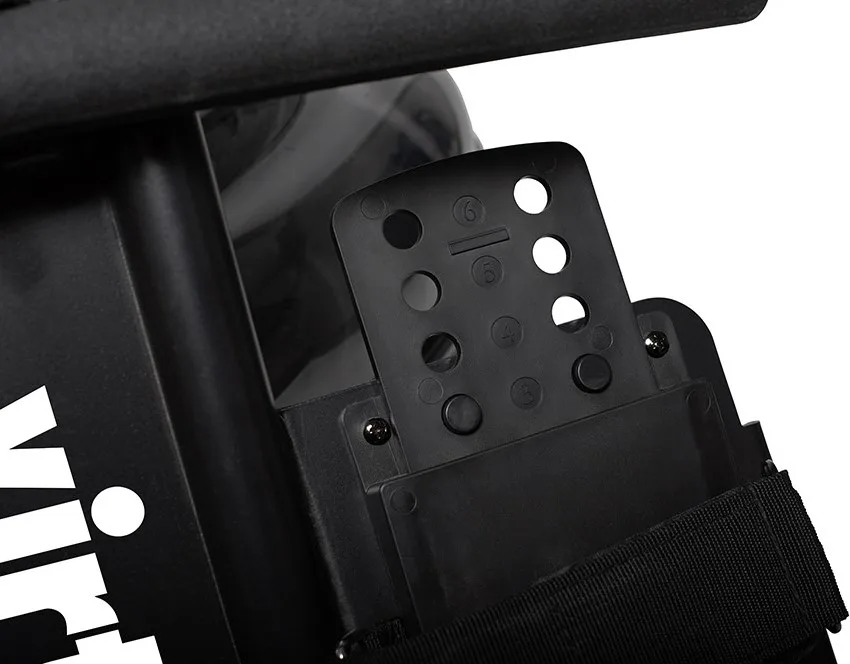 Pohodlnou polohu a pocit při veslování zajišťuje ergonomicky tvarované sedlo a protiskluzové profesionální nášlapy s nastavitelnými řemínky pro správné zafixování nohou.