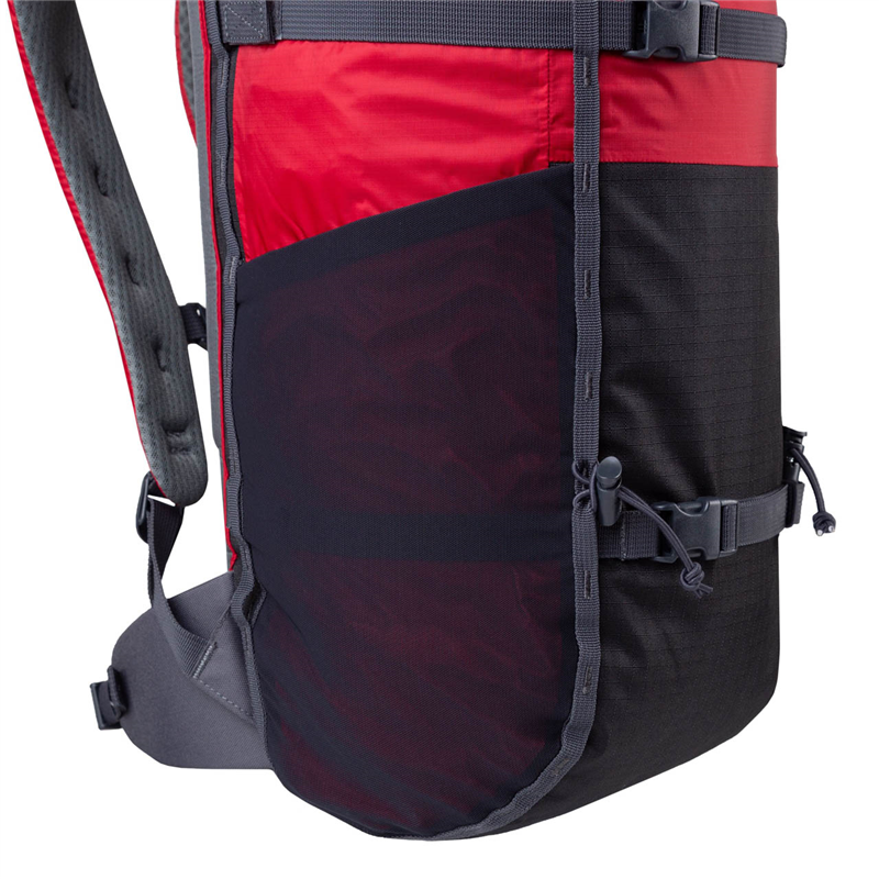 Nastavitelný a odnímatelný bederní a hrudní popruh. Postranní kapsy ze strečového síťovaného materiálu. Reflexní prvky pro lepší viditelnost.