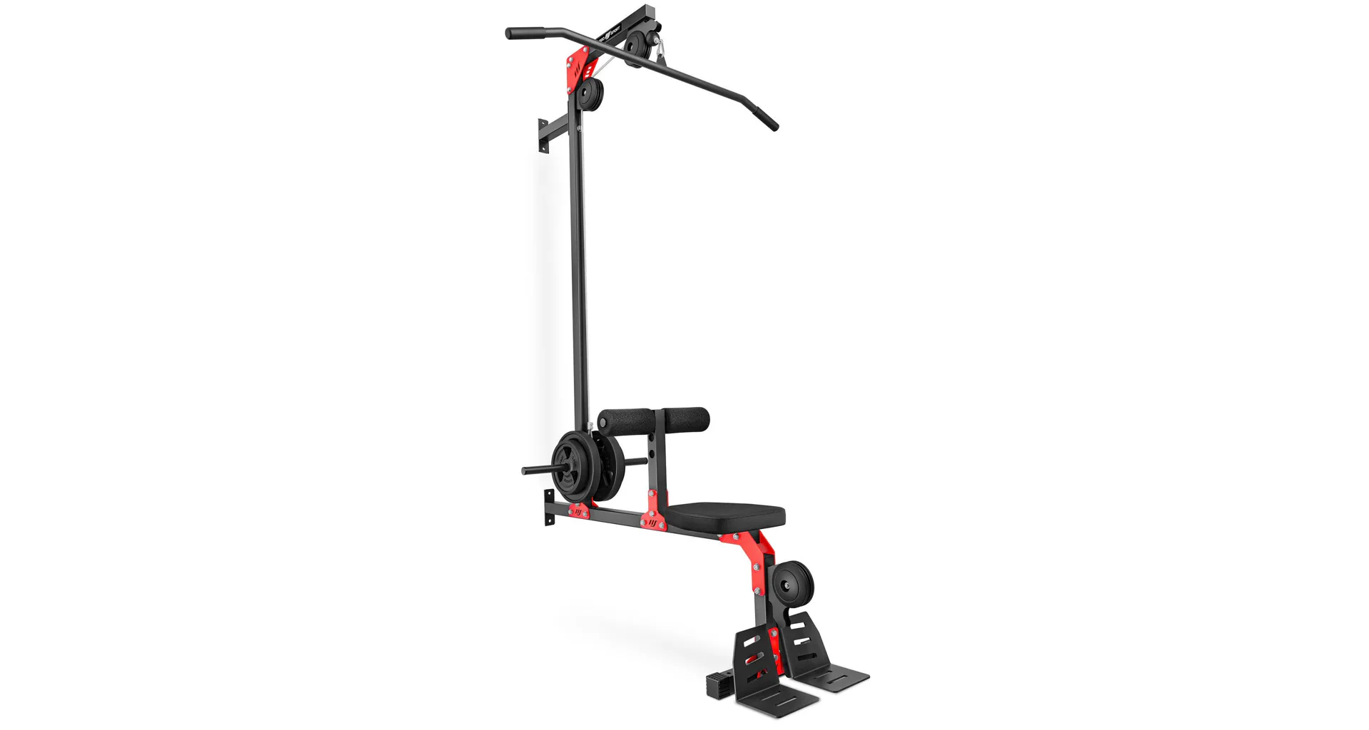 Robustní ocelové nášlapy slouží k zapření během tréninku se spodní kladkou a zároveň zamezují zvedání konstrukce. Zarážka nohou je nastavitelná do 3 úrovní a je osazena válci z EVA pěny pro maximální komfort. Pohodlné polstrování je vyrobeno ze syntetické kůže.