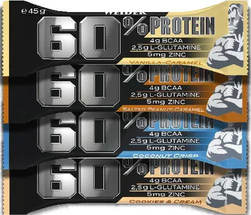 Proteínová tyčinka Weider 60% Protein Bar je o krok ďalej pred konkurenciou a ponúka najvyšší obsah bielkovín obsiahnutých v tyčinke, až 27 gramov bielkovín.Tie sú dôležité pre rast a udržiavanie svalov. Sú nevyhnutnusťou, ak chcete vidieť vaše svaly rozvíjať rovnako ako keď ich chcete tónovať a definovať.