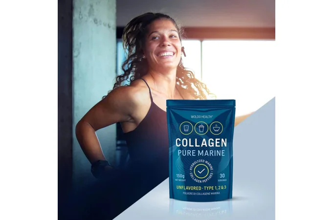 WoldoHealth® 100% hydrolyzovaný mořský kolagen vysoké kvality obsahující pouze přírodní peptidy mořského kolagenu pro regeneraci buněk, zpomalení procesu stárnutí, zdraví kostí, kloubů a krásnou pleť. Mořský kolagen v hydrolyzované formě umožňuje snadné rozpouštění ve vodě či jiných tekutinách a maximální využití všech složek naším tělem.