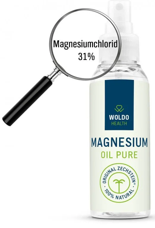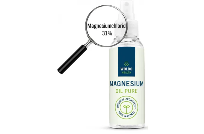 WoldoHealth® Hořčíkový olej 100ml obsahuje až 31% chloridu hořečnatého.