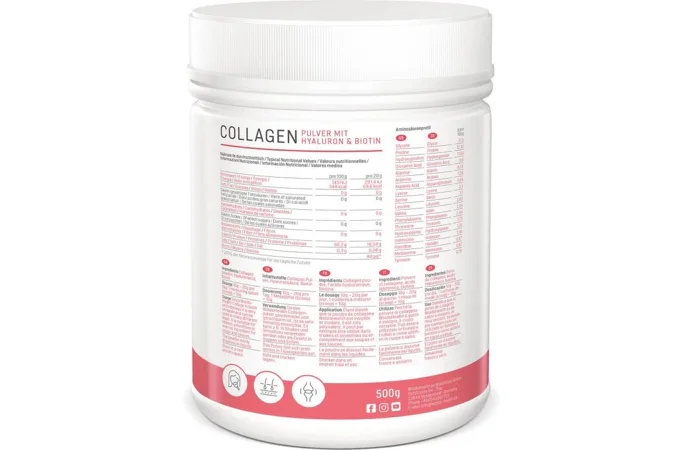 Kyselina hyaluronová, stejně jako kolagen, má příznivý účinek na pokožku, nehty, vlasy, klouby a pohybový aparát. Při jejich kombinaci se účinek obou látek zvyšuje.