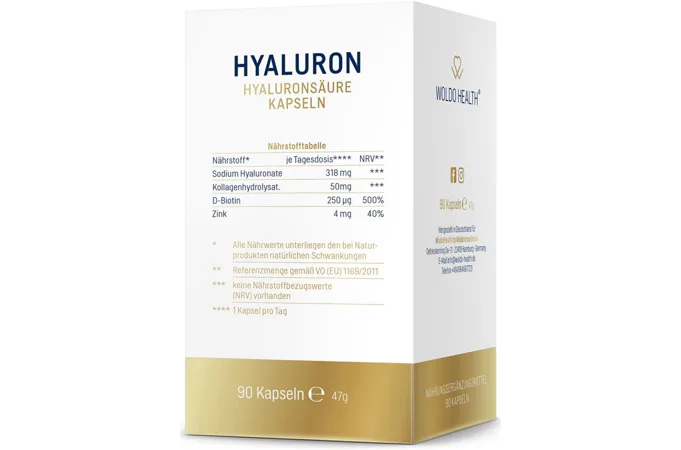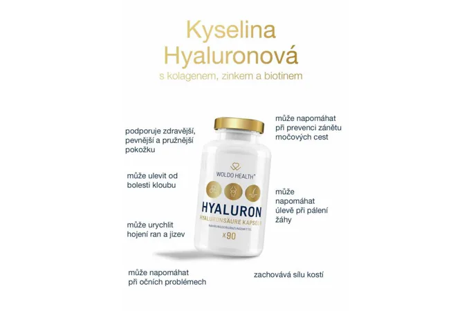 WoldoHealth® Kyselina hyaluronová je přirozeně přítomná v lidském těle, kde se nachází především v pokožce, pojivových tkáních a očích. Její hlavní funkcí je zadržování a postupné uvolňování vody pro zachování hydratace pokožky, tkání a hladkého pohybu kloubního aparátu. Lidské tělo je schopno vytvářet kyselinu hyaluronovou. S postupem věku je její produkce snižována. Proto je doporučováno ji přibližně kolem 25 let začít tělu dodávat.