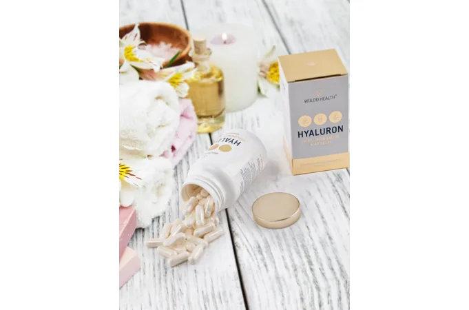 WoldoHealth® Kyselina hyaluronová má příznivý účinek na hydrataci pokožky, stimulaci a růst nových buněk a omezení tvorby vrásek. Má také velký vliv na správnou funkci kloubů. Je nezbytnou součástí synoviální tekutiny, což je vazká tekutina zabezpečující hladký pohyb kloubů a zamezující jejich nadměrnému tření. Má schopnost nést živiny do chrupavky a odvádět odpadní látky z kloubního pouzdra.