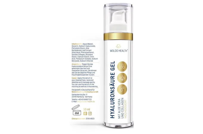 WoldoHealth® Sérum s vysokým obsahem aloe vera a kolagenu hydrydratuje a vyživuje pokožku, omlazuje pleť a dodává jí cennou výživu. Kyselina hyaluronová v této formě dokáže proniknout do hlubších vrstev pokožky a působit na ni vnitřně, má na pokožku Anti-Aging efekt. Sérum je dodáváno v 50 ml lahvičce, která díky dvojitému obalu chrání produkt před přímým slunečním světlem.
