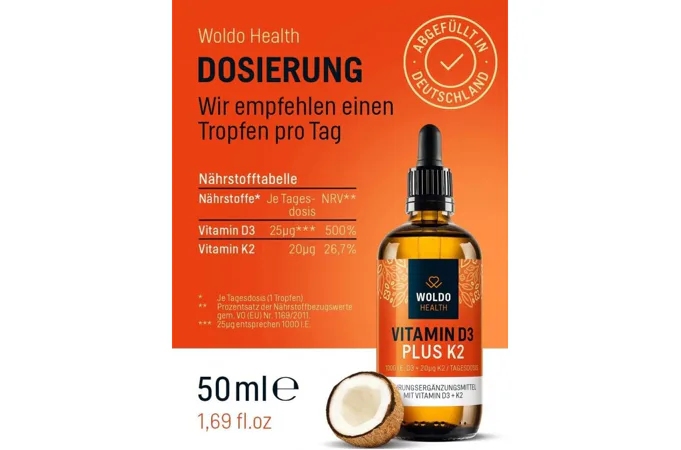 Zkombinovali jsme WoldoHealth® Vitamín D3+K2 s patentovanou formou vitamínu K2 jako MK7 K2VITAL®DELTA od německé společnosti Kappa Bioscience. To zaručuje maximální vstřebatelnost obou vitaminů.