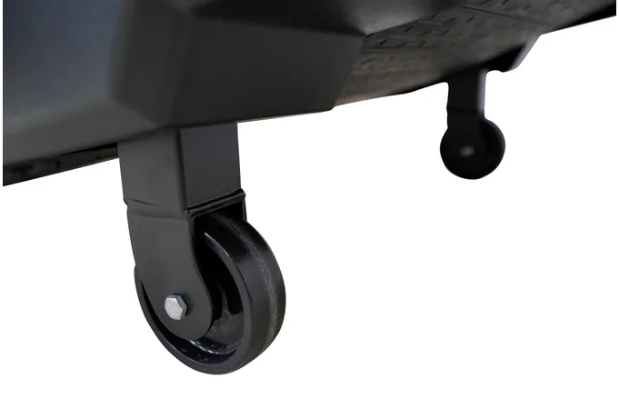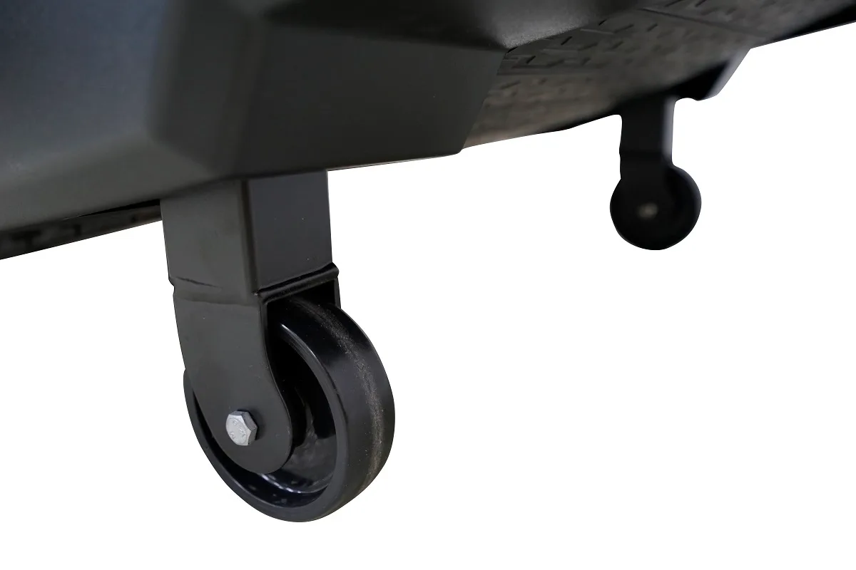 Navíc je samozřejmě trenažér vybaven transportními kolečky a vyrovnávači nerovnosti pro maximální stabilitu a snadnou manipulaci.