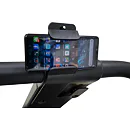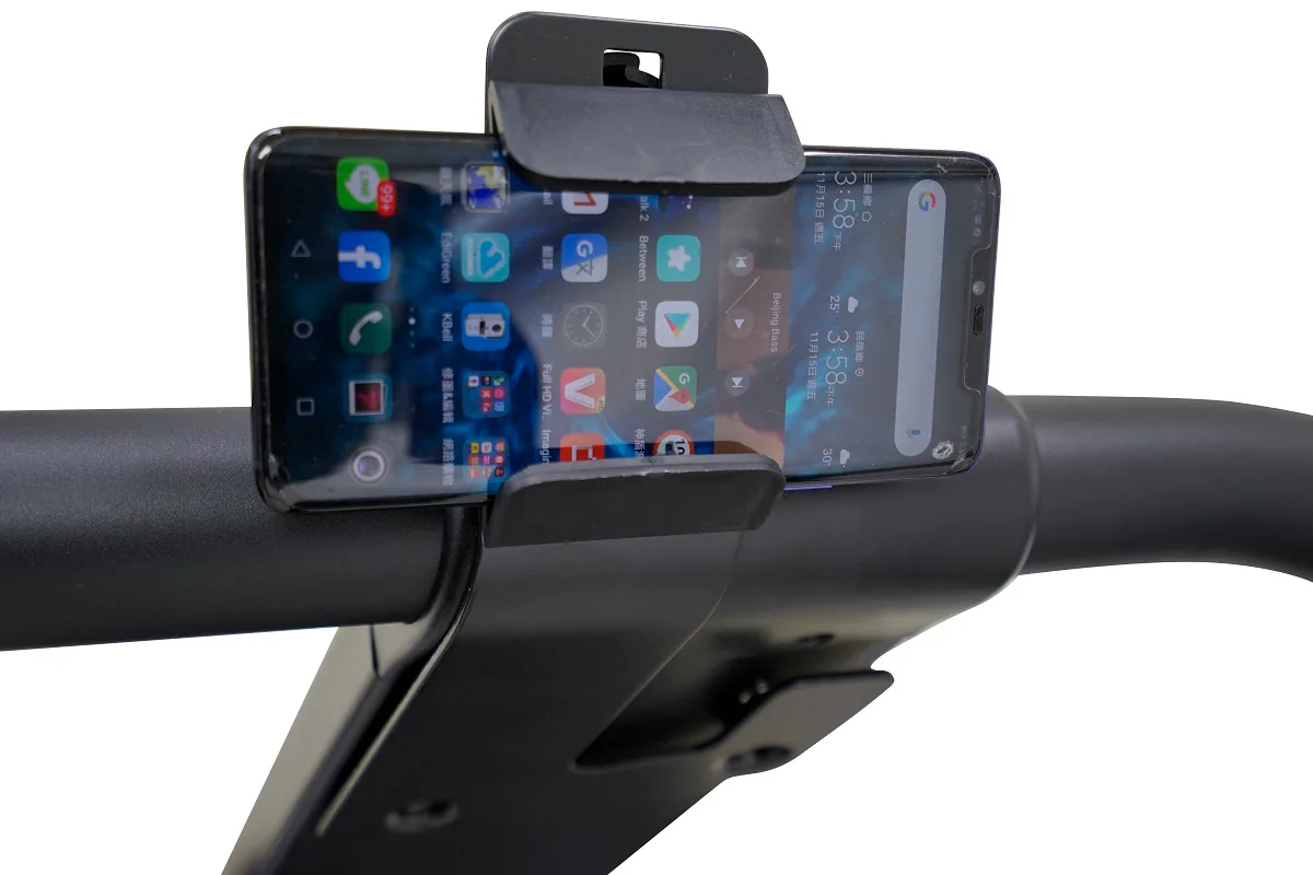 Součástí výbavy je držák na láhev s vodou a telefon.