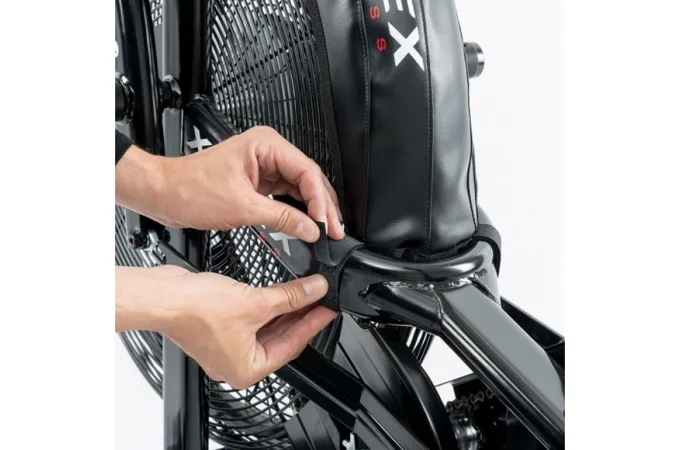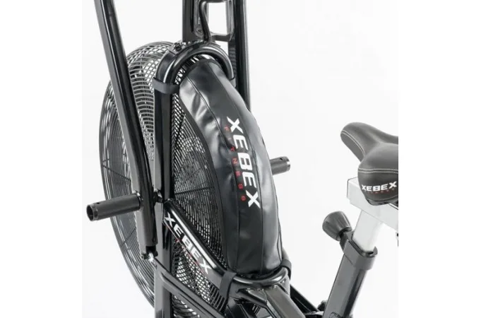 Kryt větráku pro Xebex Air Bike minimalizuje vířivý vzduchu z ventilátoru, který se tvoří při šlapání na trenažeru. Tento chladný vzduch je příjemný během intenzivních tréninků na vzduchovém kole nebo horkých letních tréninků, ale v chladných dnech může být dost nepohodlný. Proto je možné dokoupit k Air Biku tento levný doplněk s velkým efektem.