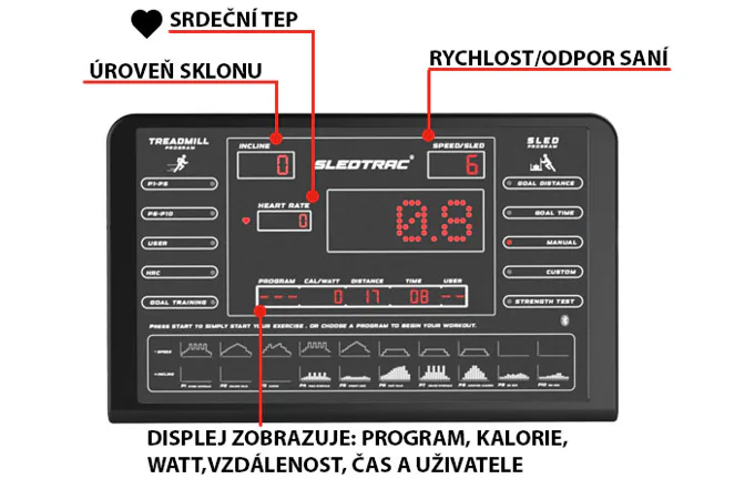 XEBEX SledTrac 6000 je profesionální běžecký pás pro ty nejnáročnější zákazníky, který je poháněn takřka nesmrtelným profesionálním AC motorem o síle 3 HP (koně) a odporu až neuvěřitelných 1500 Wattů. Předností XEBEX SledTrac 6000 je možnost běhu, chůze, tlačení saní, elektronického sklonu až do 10% úhlu, již zmíněný profesionální motor, masivní konstrukce a velmi prostorná běžecká plocha. Díky tomu můžete perfektně simulovat, chůzi, běh, tlačení saní na různé způsoby, chůze popředu i pozpátku a mnoho dalších.