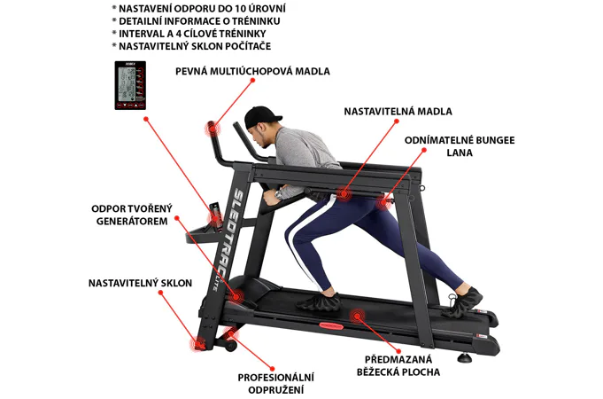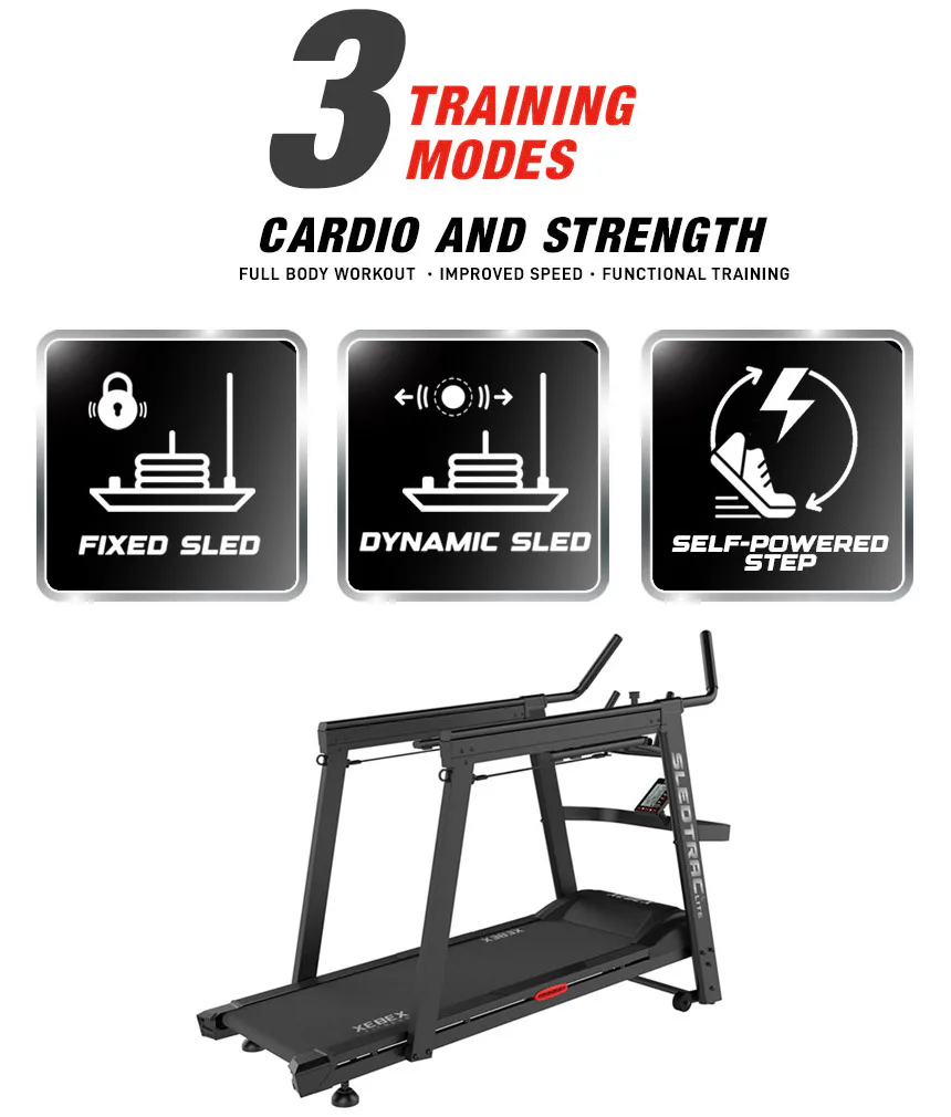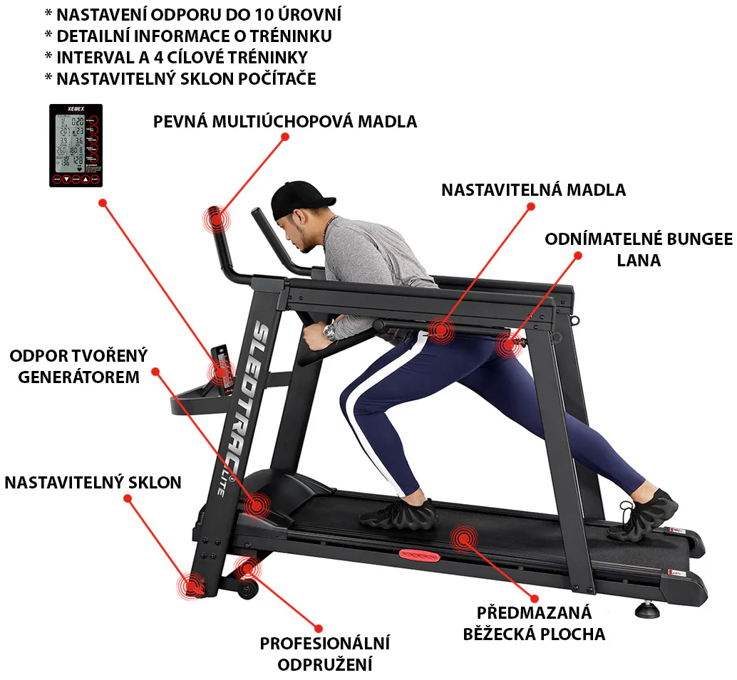 XEBEX SledTrac Lite 5000 je běžecký pás pro náročné zákazníky, který je poháněn samotným běžcem, a navíc tvoří odpor pomocí generátoru. Předností XEBEX SledTrac Lite 5000 je možnost sklonu do 7 a 16% úhlu a generátor, který tvoří odpor a zároveň napájí počítač. Díky tomu můžete perfektně simulovat, chůzi do kopce a tlačení saní na různé způsoby.