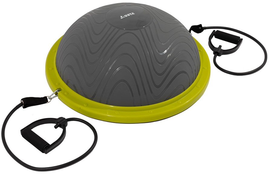 Nafukovací balanční podložka HALF BALL s gumovými expandéry v novém barevném provedení a s upravenou kopulí, která umožňuje náročnější cviky. Pevný plastový korpus a kovové součásti pro připevnění expandérů.