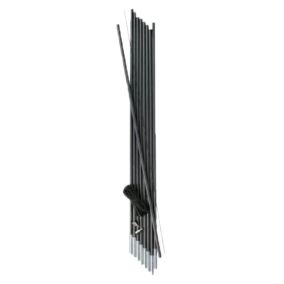 Sada náhradních tyčí ke stanu. Průměr: 9,5 mm. Balení obsahuje 9 tyček, které jsou zakončené kovovou spojkou s hloubkou cca 4 cm. Tyče jsou spojené elastickou pruženkou.